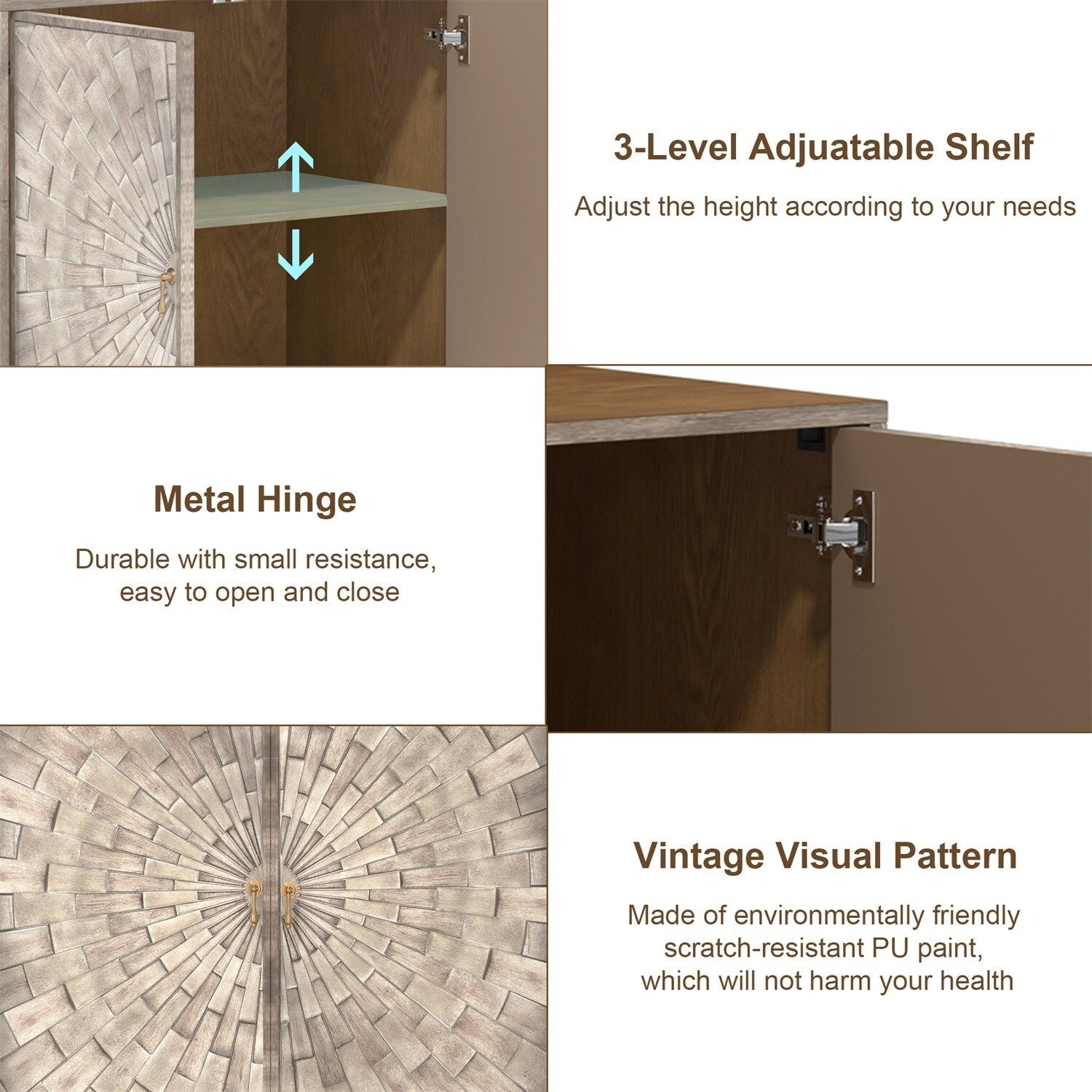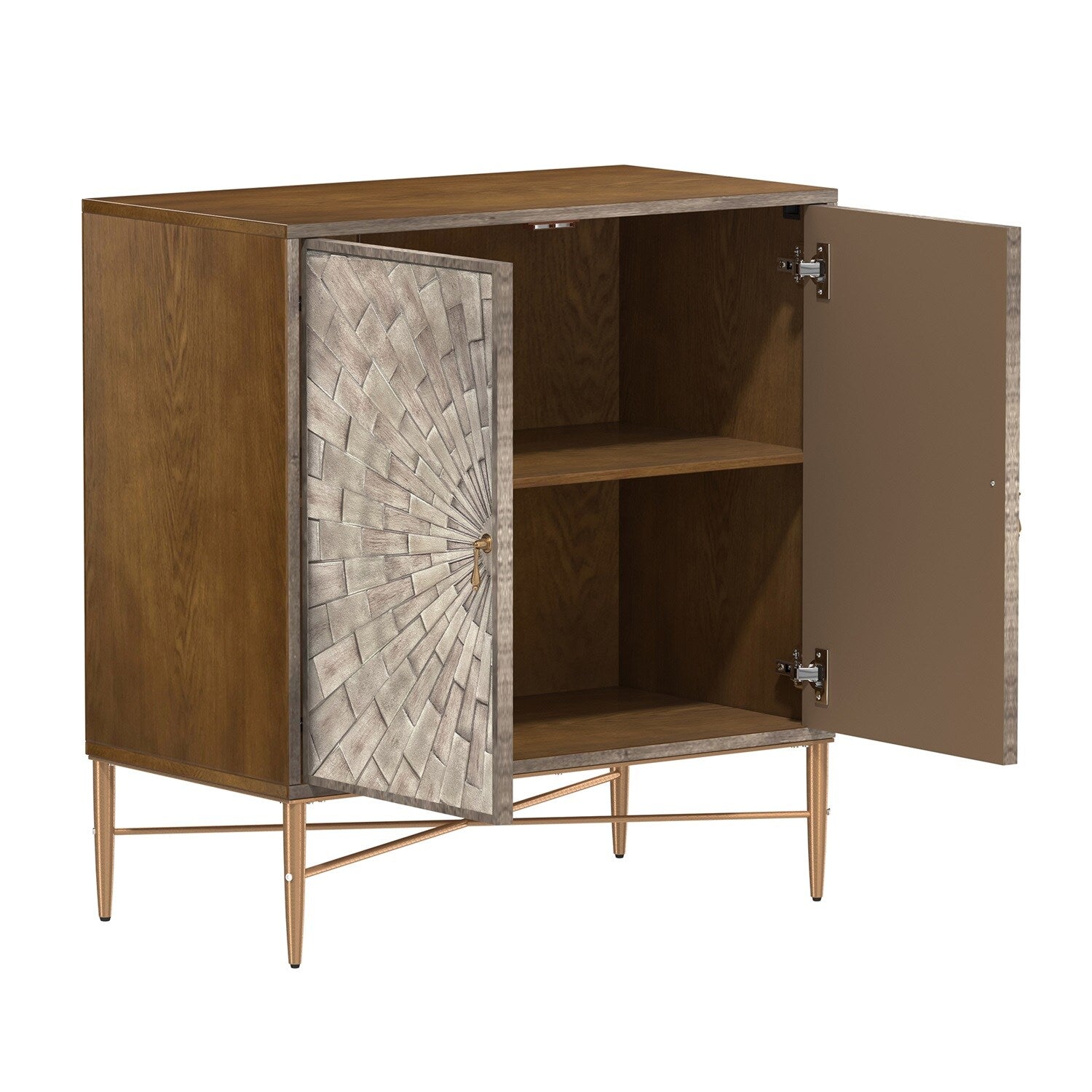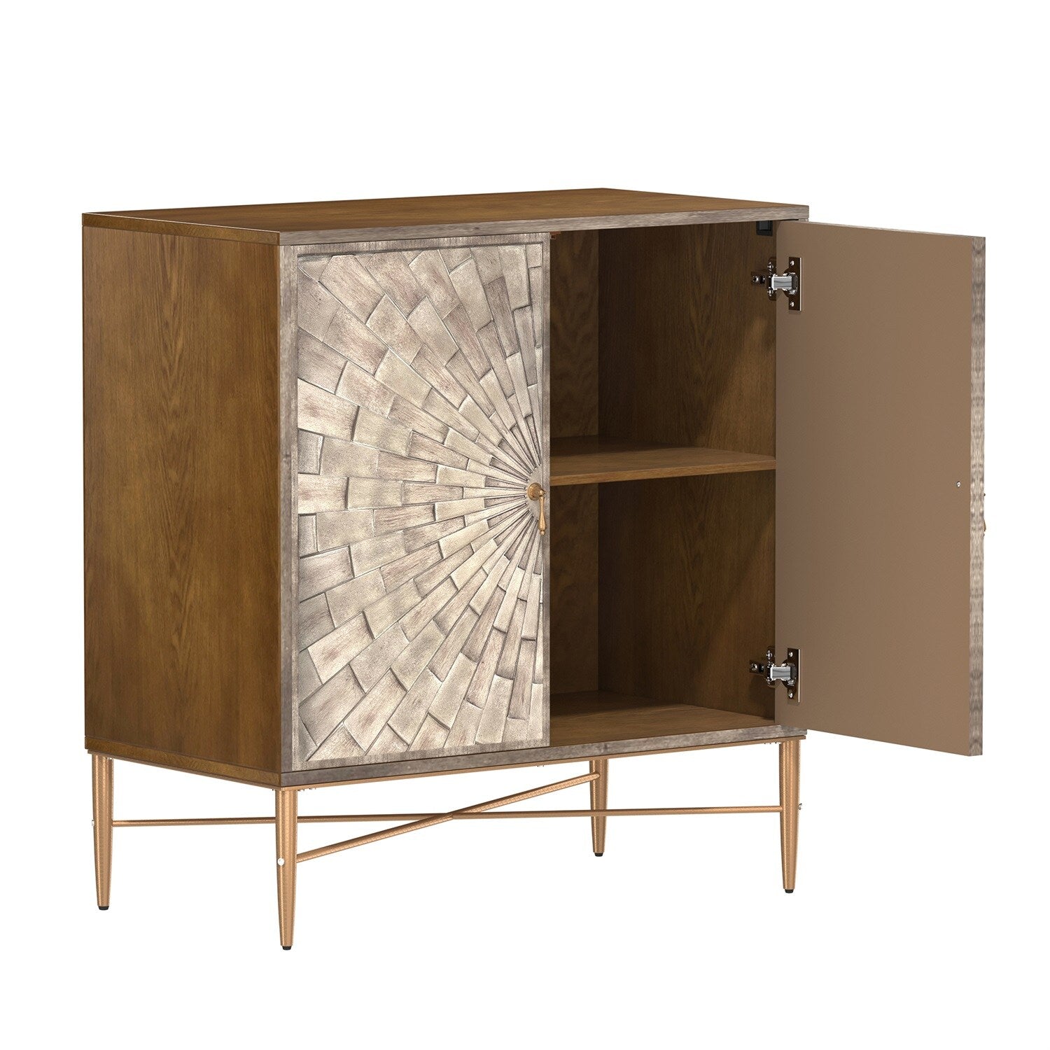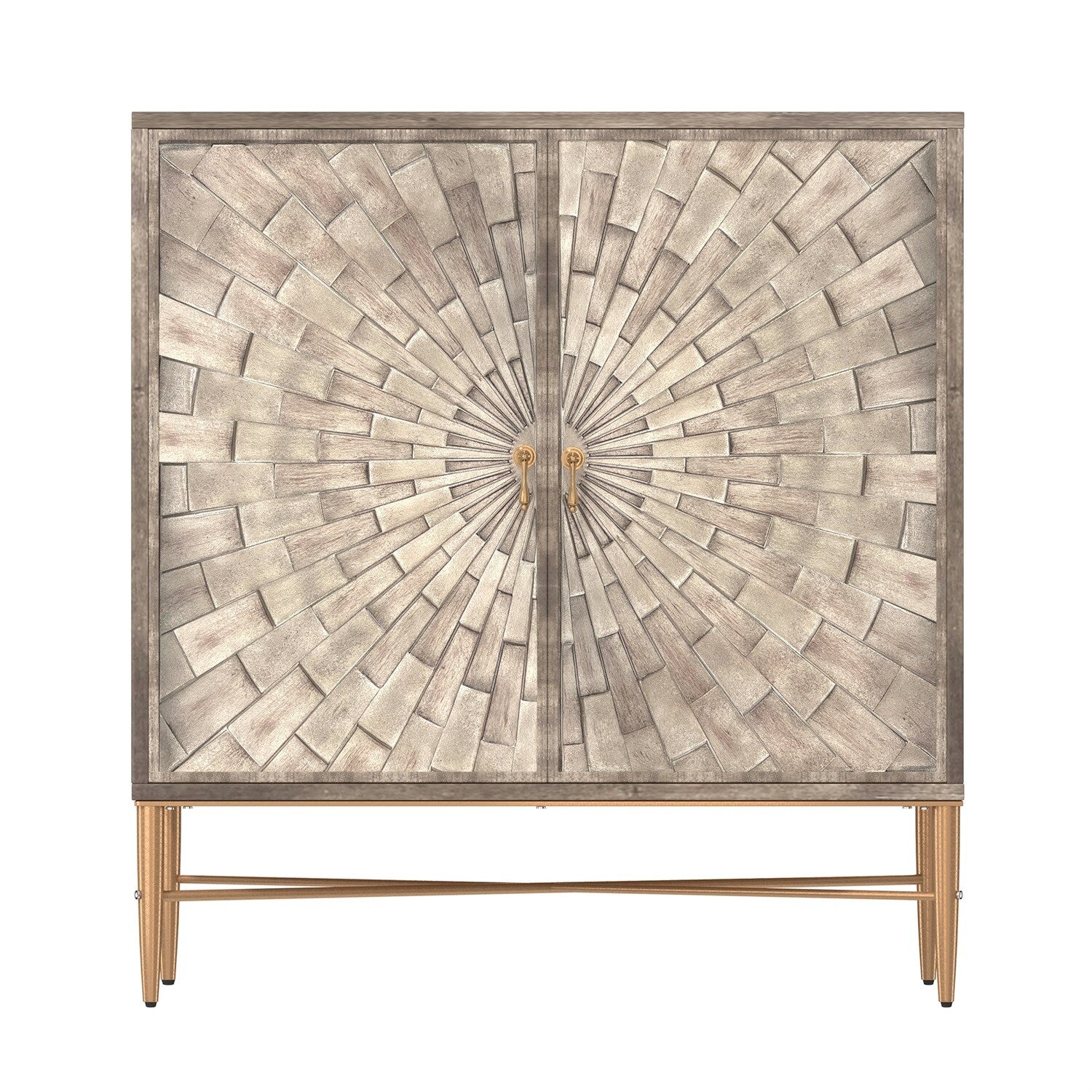 The Mondawe 30" Vintage Accent Cabinet is a sophisticated storage solution that effortlessly combines vintage charm with modern industrial style. Hand-painted with a three-dimensional geometric pattern, this piece adds elegance and functionality to any room, providing ample storage with its adjustable shelves.