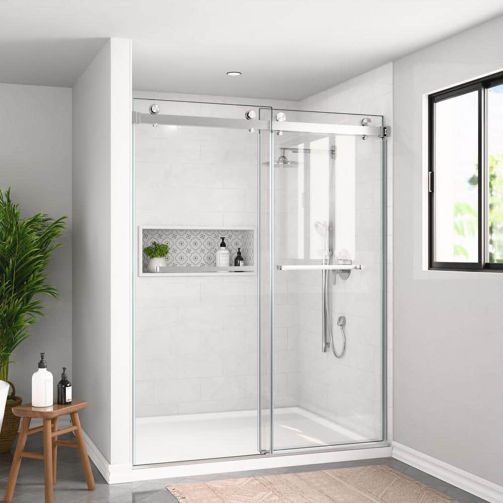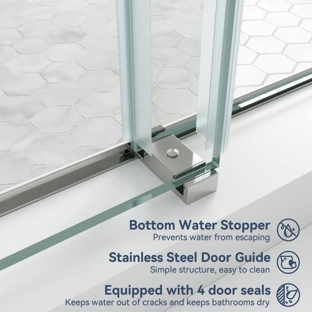 Transform your bathroom with the mortix Double Sliding Frameless Shower Door. Featuring 3/8 in. SGCC certified tempered glass and a brushed nickel finish, this door offers unparalleled strength, safety, and elegance. Its frameless design and double sliding function bring both beauty and convenience to modern bath spaces.