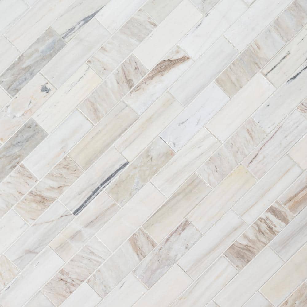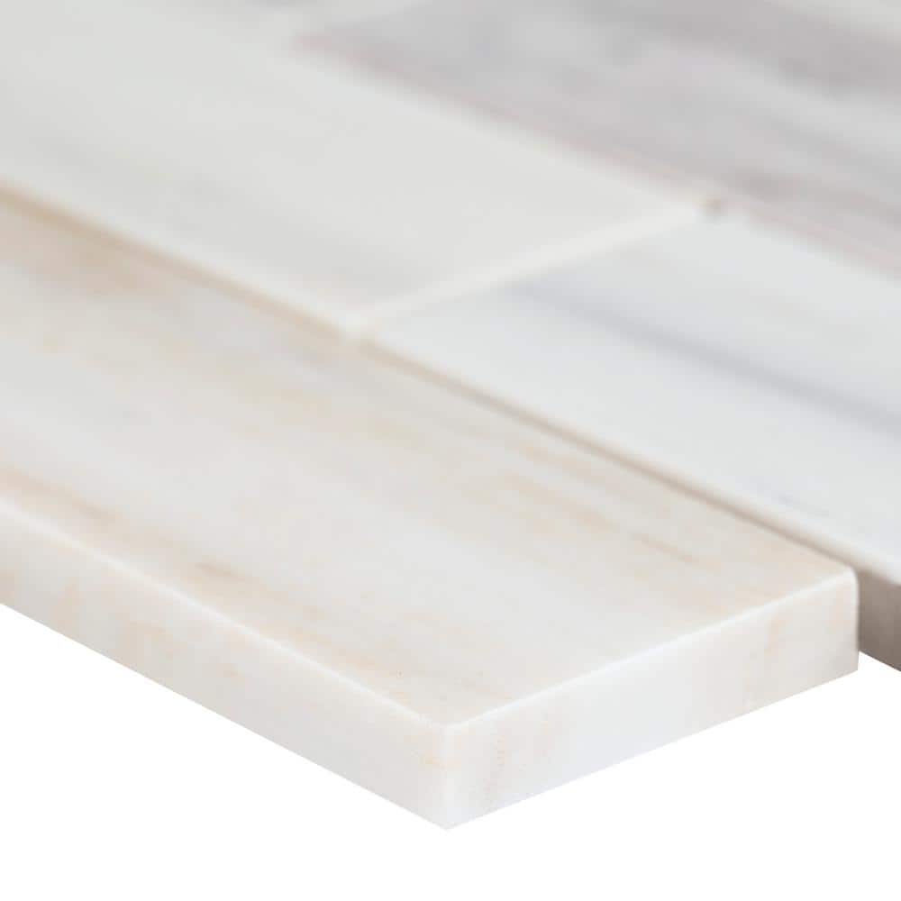 Elevate kitchens and baths with MSI’s Angora Subway mosaic—polished natural marble on mesh-mounted 11.81 in. x 11.81 in. sheets for easy installation. Soft white and gray veining brings timeless luxury to backsplashes, feature walls, and light-duty floors while the 10mm thickness offers lasting durability.