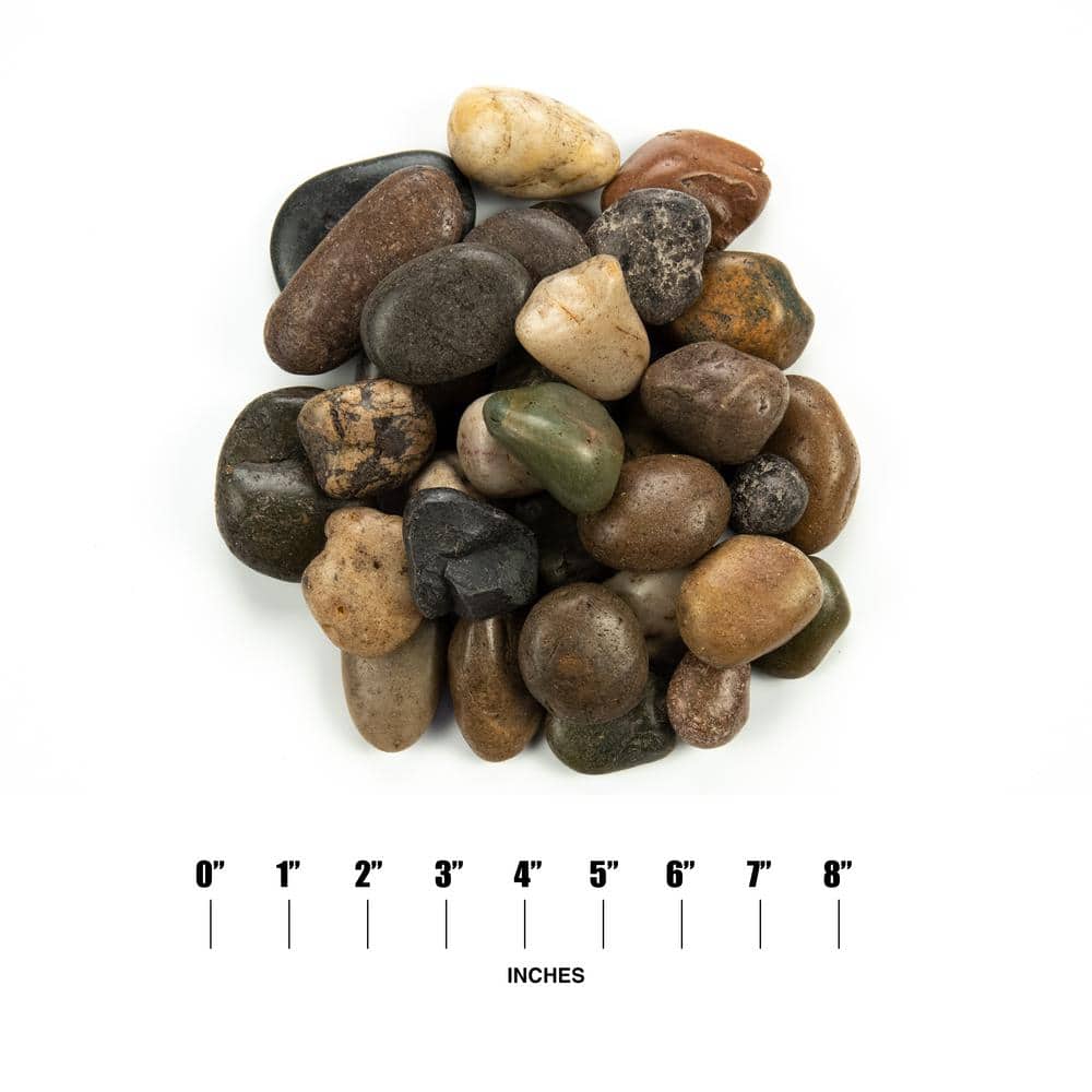 Q: What size are the pebbles? A: Each pebble ranges from approximately 1 in. to 2 in. in size.
