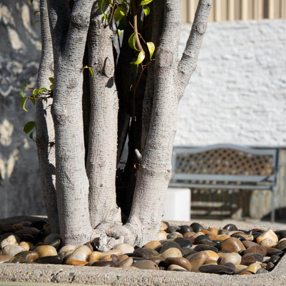 Q: What are the pebbles made of? A: They are natural marble stones with a polished finish.