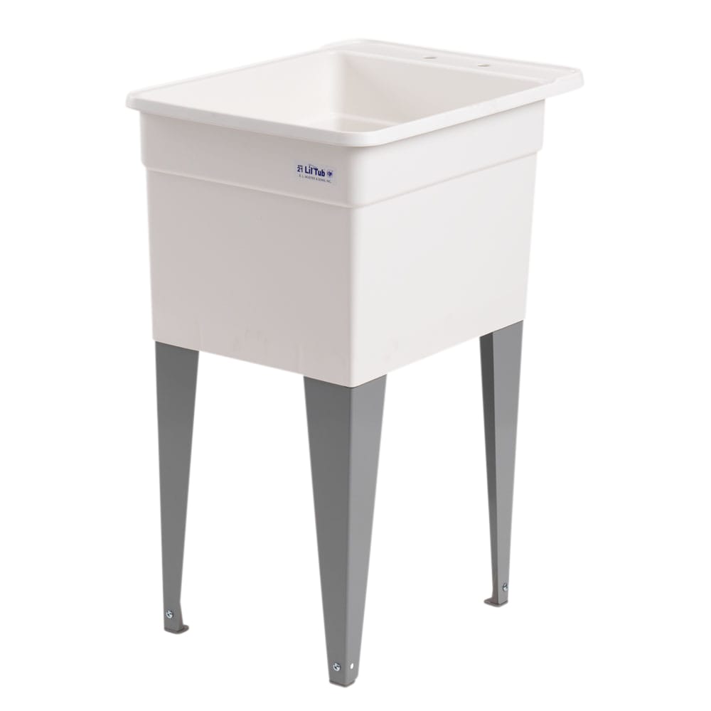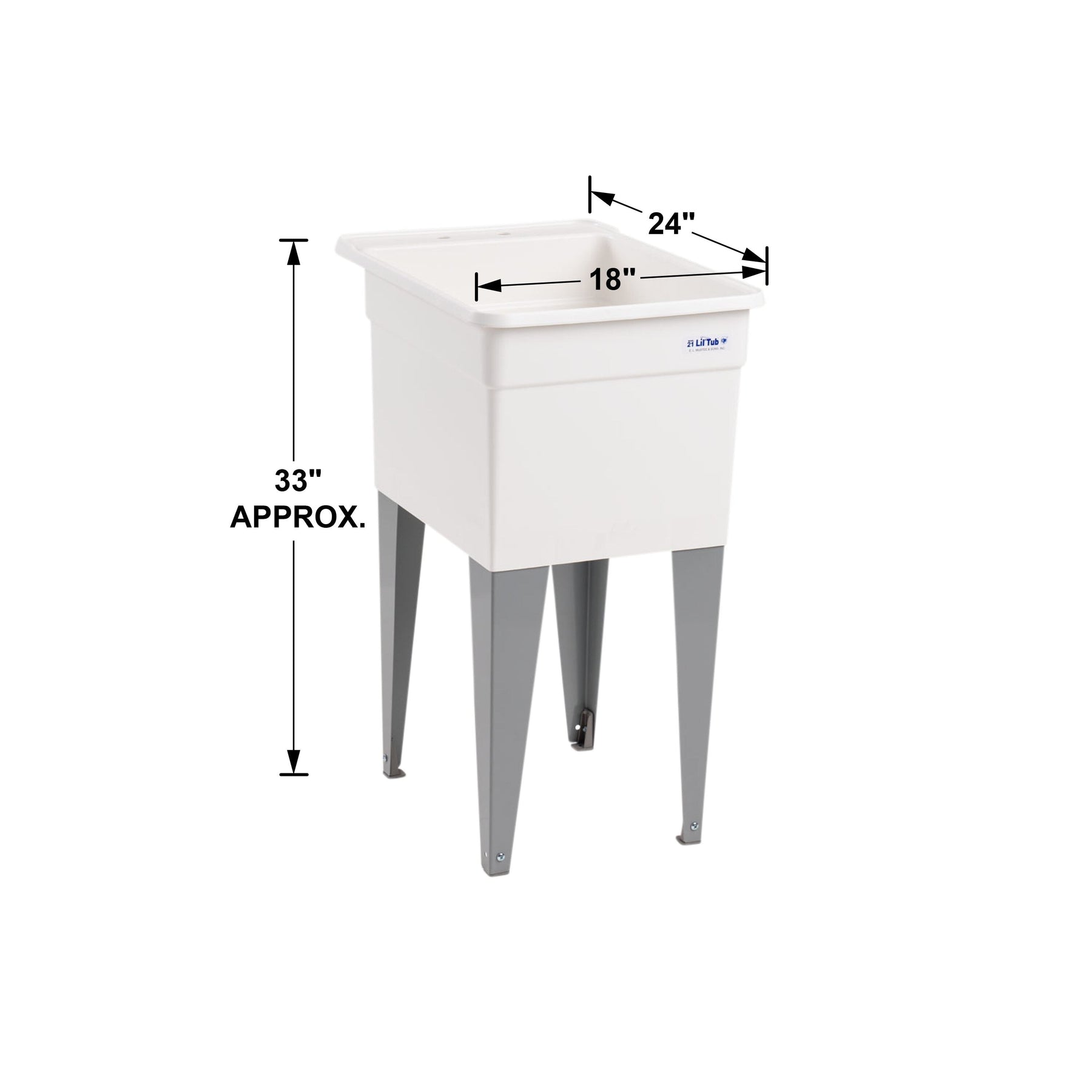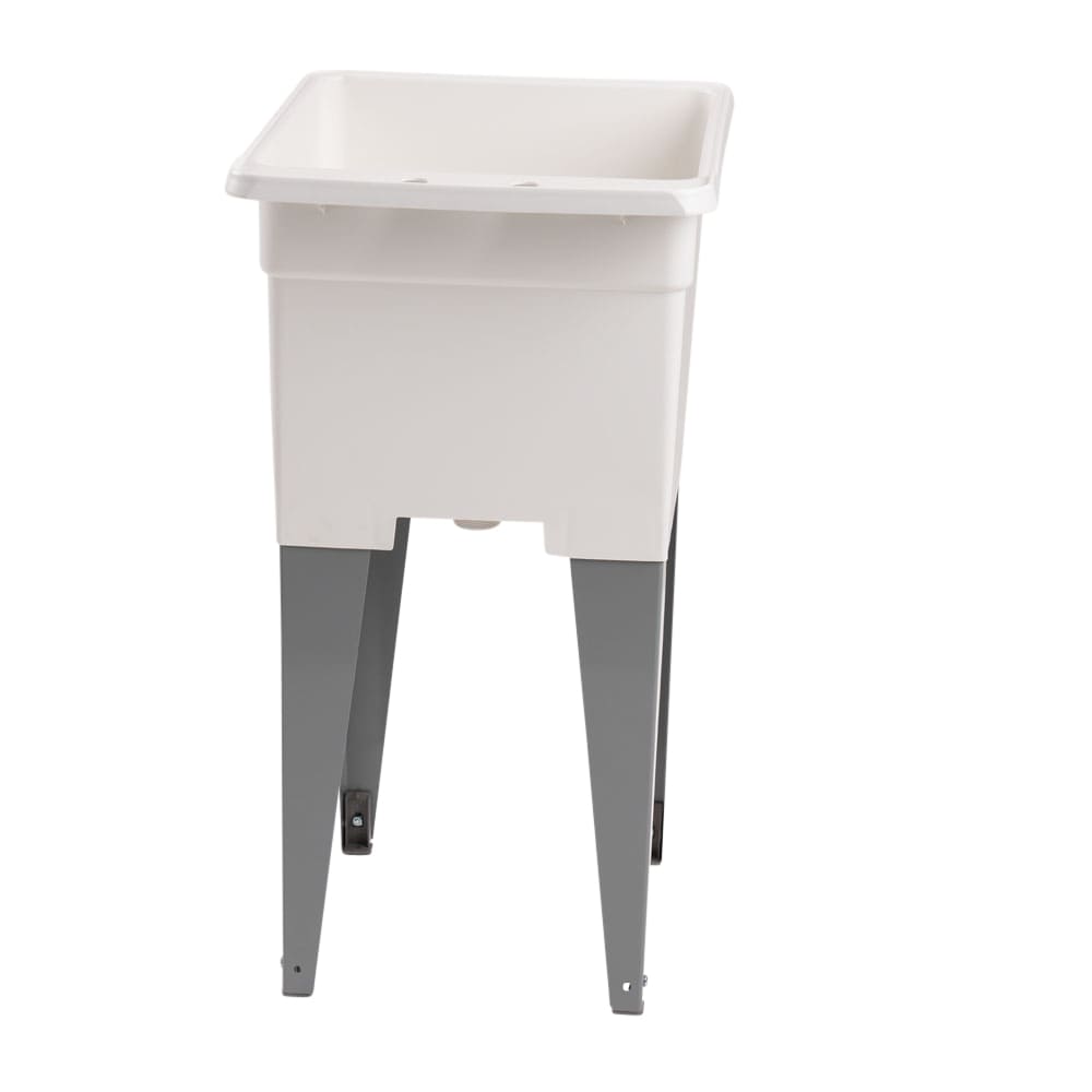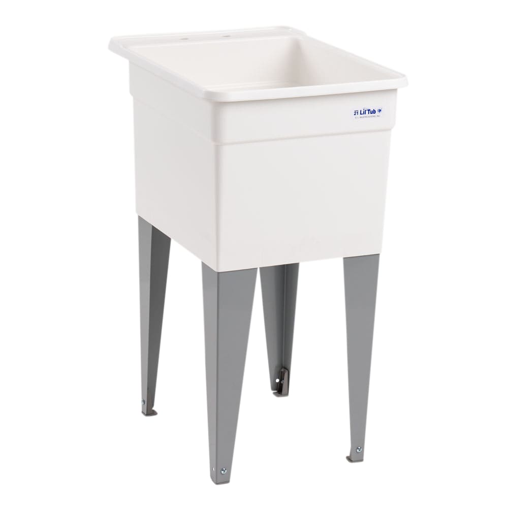 Elevate the elegance of your utility spaces with this Mustee Freestanding Utility Tub. Its pristine white finish and chic gray legs create a harmonious blend of function and style, transforming mundane chores into delightful experiences. Style it alongside sleek metallic fixtures and vibrant indoor plants to craft an inviting launderette or mudroom. Embrace this utility tub as a symbol of practicality wrapped in understated luxury.