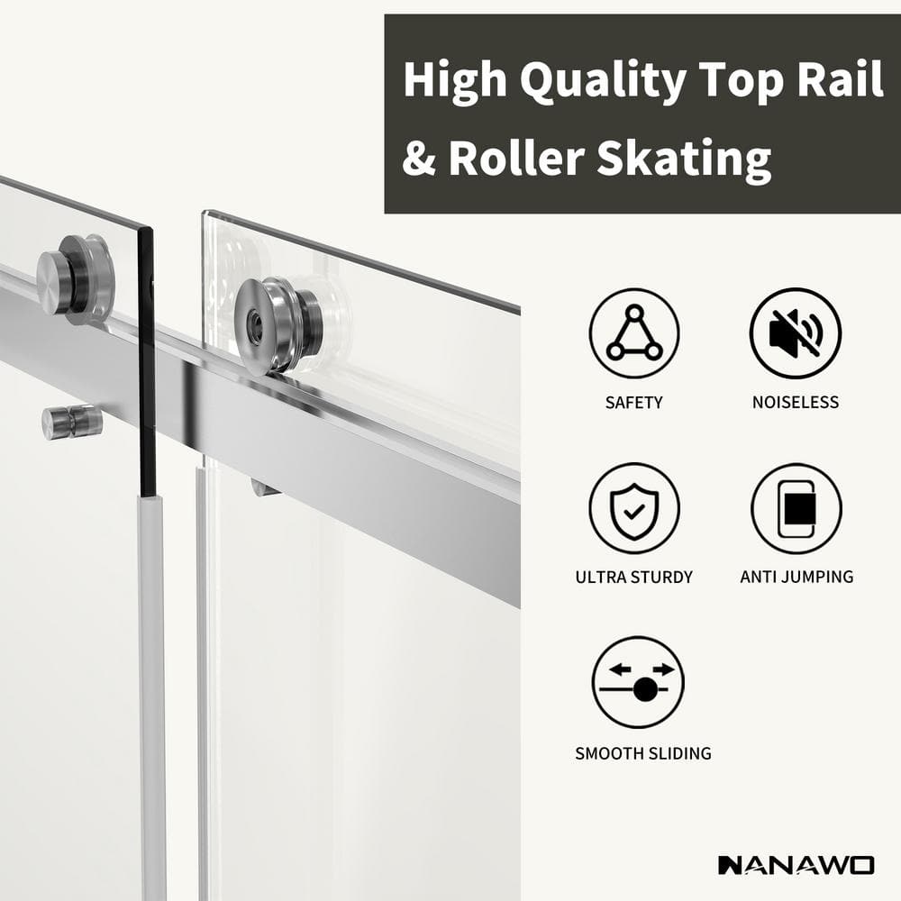 Upgrade to the NANAWO frameless sliding shower door today and elevate your bathroom elegance with sleek design and superior functionality.