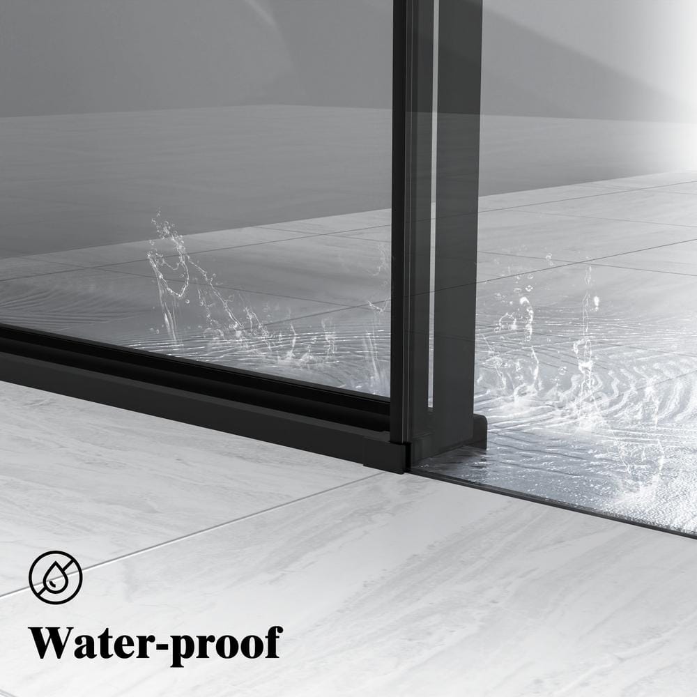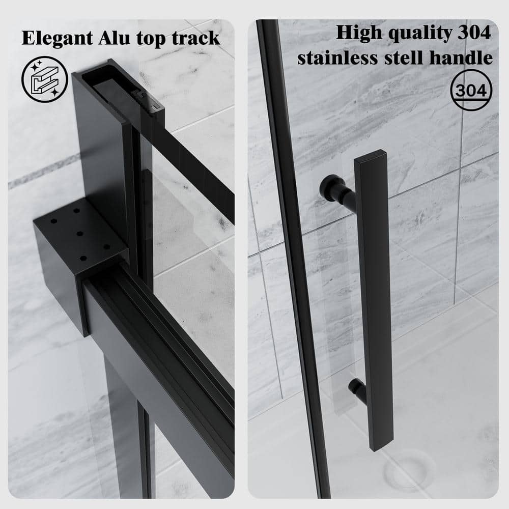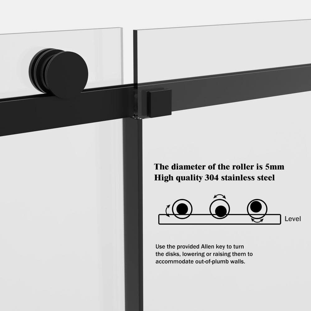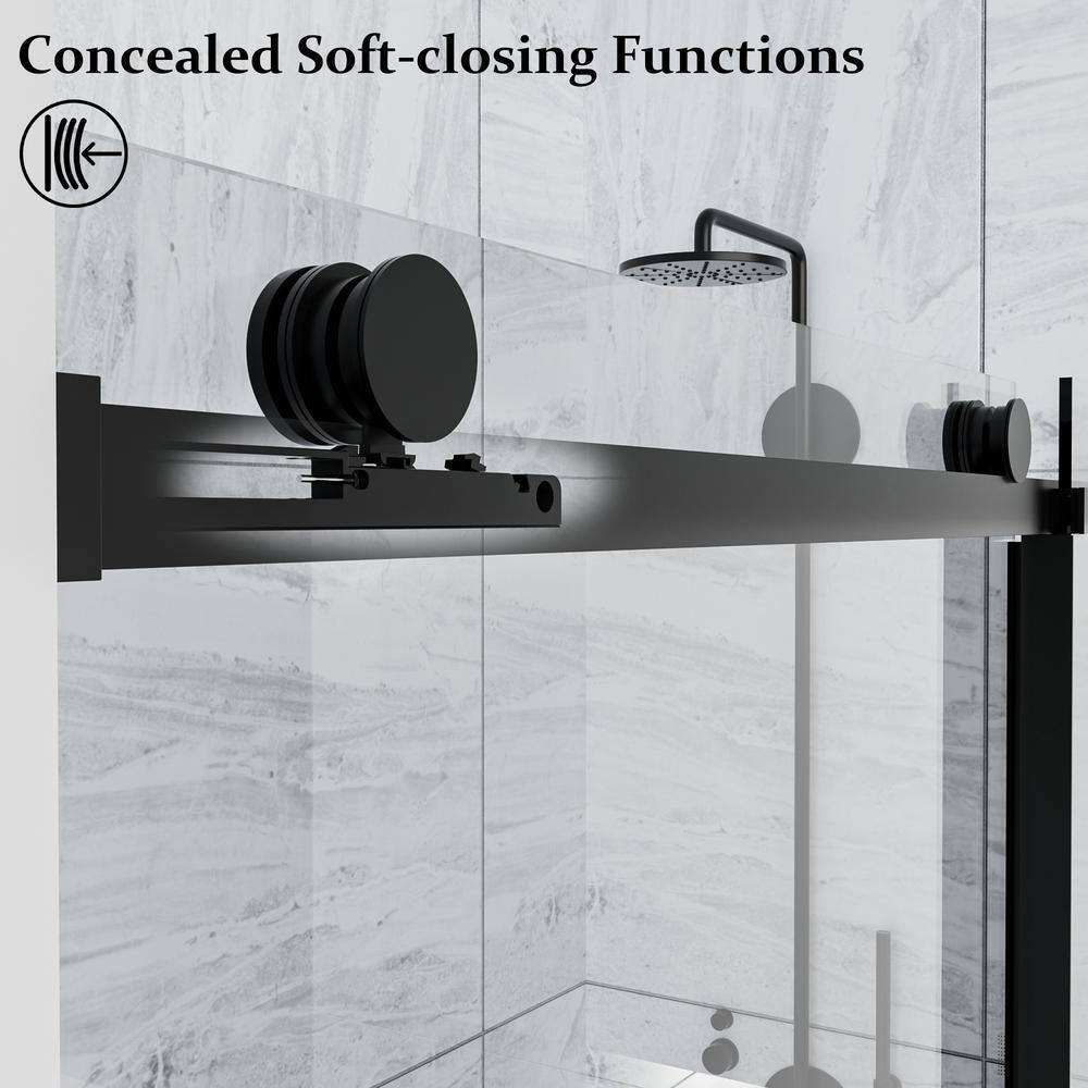 Elevate your bathroom's elegance with the NANAWO Obsidian Frameless Sliding Shower Door. Featuring a sleek matte black finish and premium 5/16-inch clear tempered glass, this door combines style with functionality. Its soft-closing system and anti-leak design ensure safety and cleanliness, ideal for modern households.