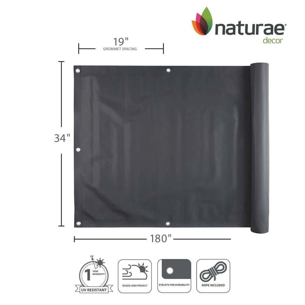 Enhance your outdoor living space with the Naturae Decor Privacy Balcony Screen in Dark Gray. Engineered with UV-resistant polyester and PVC, this screen provides year-round privacy and protection against the elements. Effortlessly install it using the included 35 ft. cord for a seamless and stylish transformation of your balcony or patio.