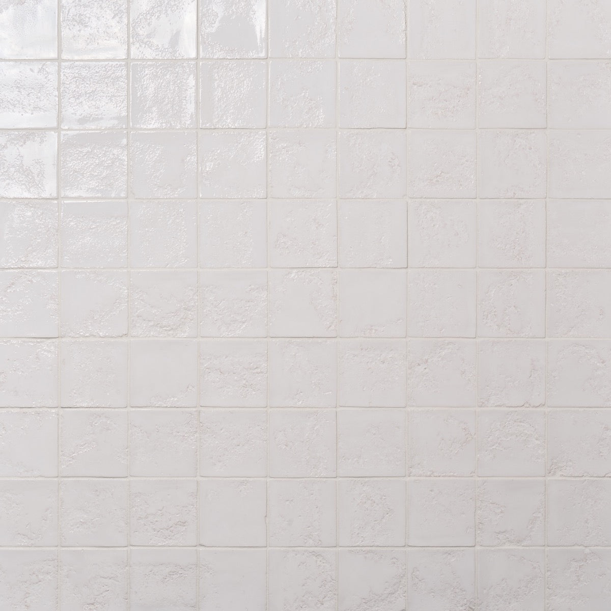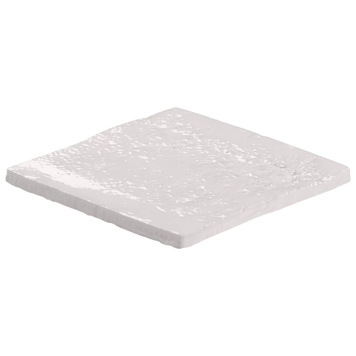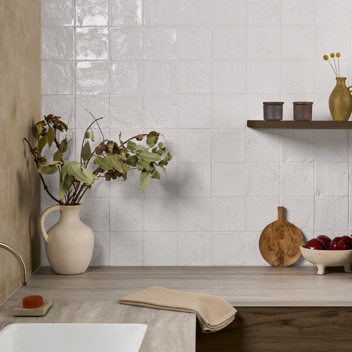 The Navari White 5x5 Textured Glossy Ceramic Tile offers a handcrafted, artisanal look with a polished finish. Perfect for walls in kitchens, bathrooms, and showers, this tile combines rustic charm with modern durability.