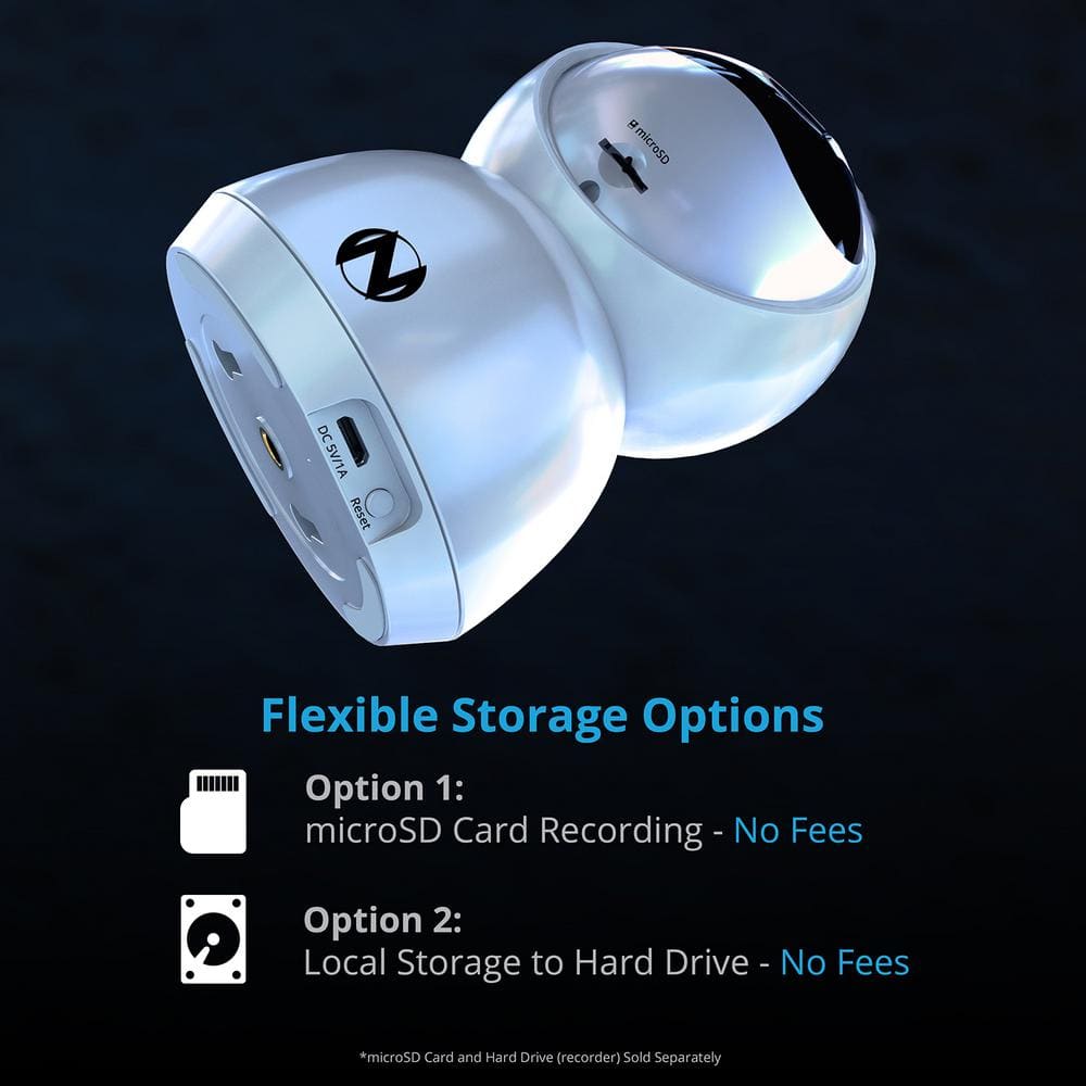 Q: Can I store footage locally? A: Yes, you can store footage on a microSD card or a compatible Night Owl recorder, both options do not incur any additional fees.