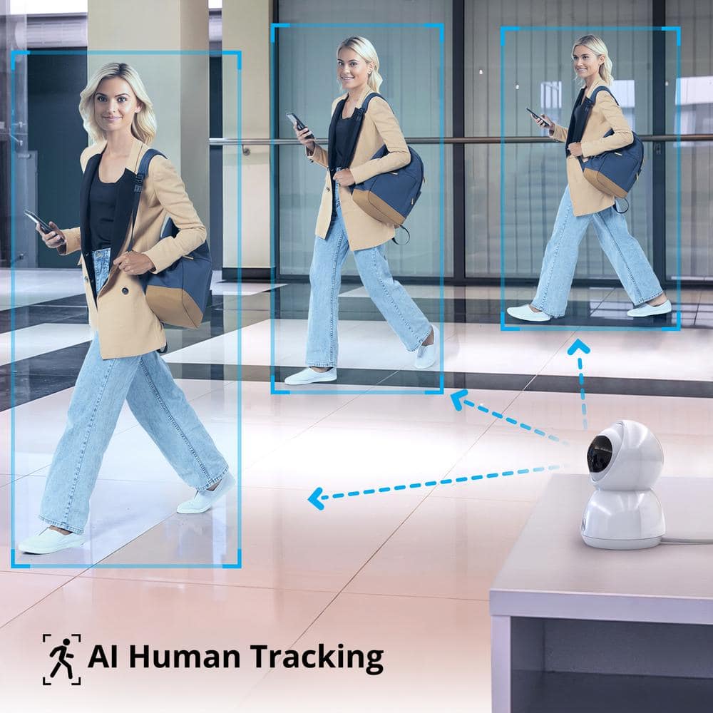 Q: How does the camera track movements? A: It uses advanced AI technology to detect and follow human movements, ensuring critical events are not missed.