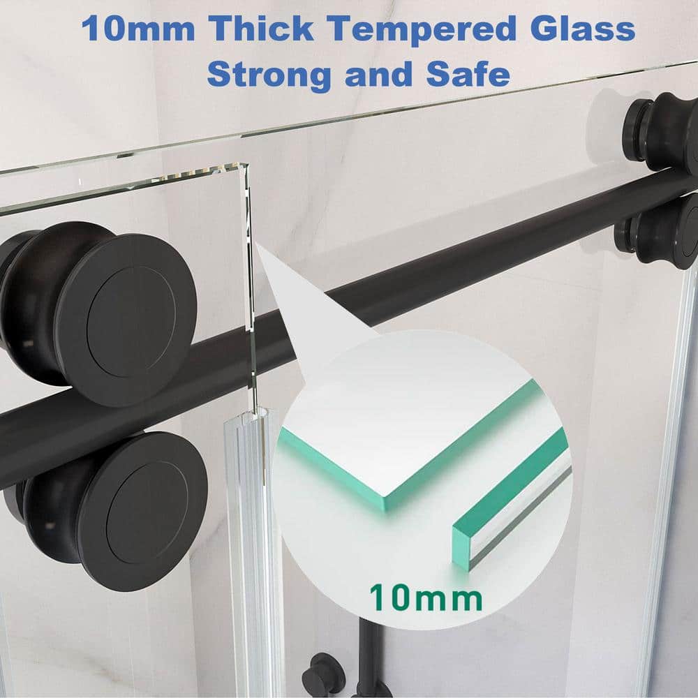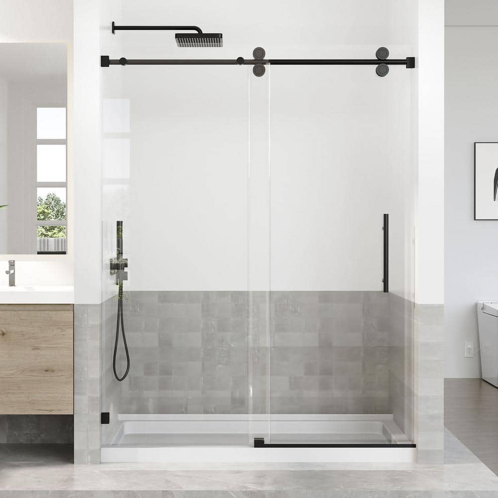 Opvande 56-60 in. W x 76 in. H Sliding Frameless Shower Door in Black Finish with 3/8 in. (10 mm) Tempered Glass