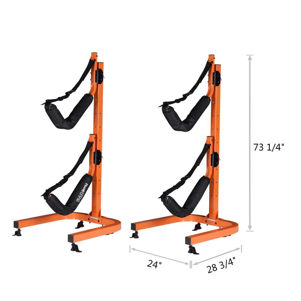 The 2-Canoe Freestanding Kayak Storage Rack transforms utility into elegance. Its vibrant orange hue injects a pop of color into your garage or boathouse while providing practical, robust support for your beloved watercrafts. With its sleek, minimalist design, it blends seamlessly into any space, evoking both efficiency and modern chic. Anchor it indoors or outdoors for a striking way to showcase your watercraft collection, reinforcing its place in your luxurious lifestyle.