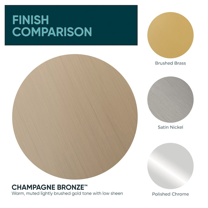 Finish: Champagne bronze is a warm muted gold tone with light brushing and low sheen