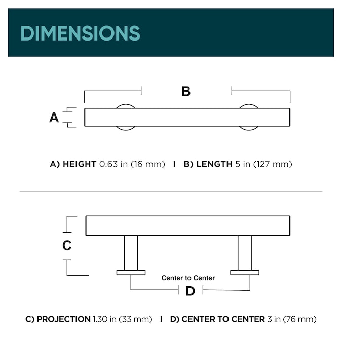 A: The center-to-center measurement is 3 inches (76mm), which is standard for many cabinets and drawers.