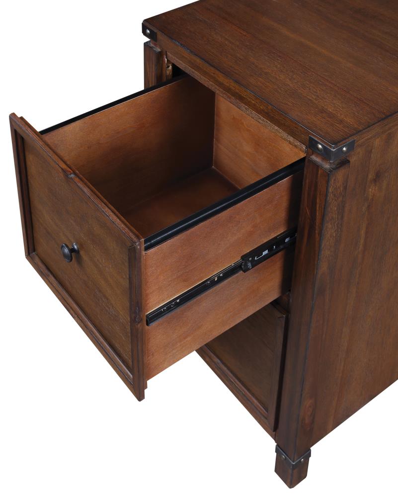 The Baton Rouge Brushed Walnut File Cabinet combines timeless rustic elegance with modern functionality. Its charming walnut finish and industrial metal accents make it a statement piece, while the spacious drawers with full extension slides provide practical storage solutions for your office essentials.