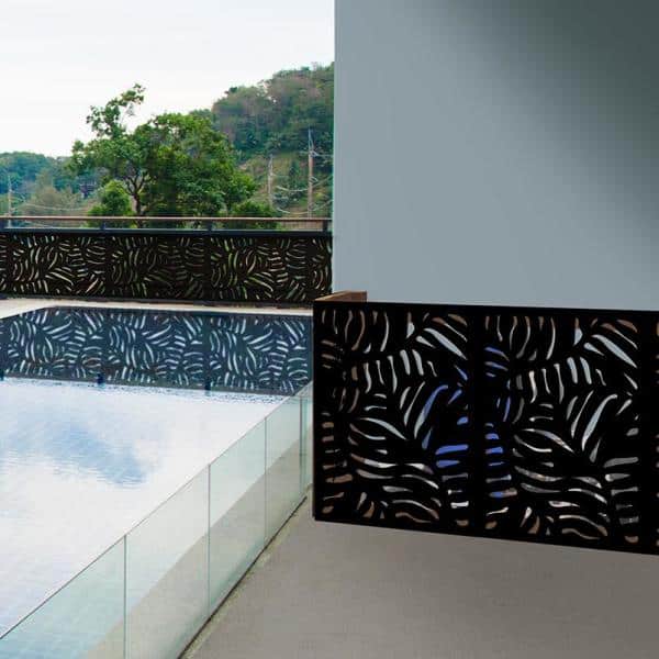 Transform your outdoor havens with the OUTDECO Black Paradise panel—a true blend of art and architecture. The intricate tropical leaf design not only functions as a privacy screen but also as an artistic focal point that commands attention. Use it to craft an exotic urban oasis, perhaps enhancing it with clever lighting for an evening allure. Essential for the discerning homeowner who craves sophistication and style in every aspect of their space.