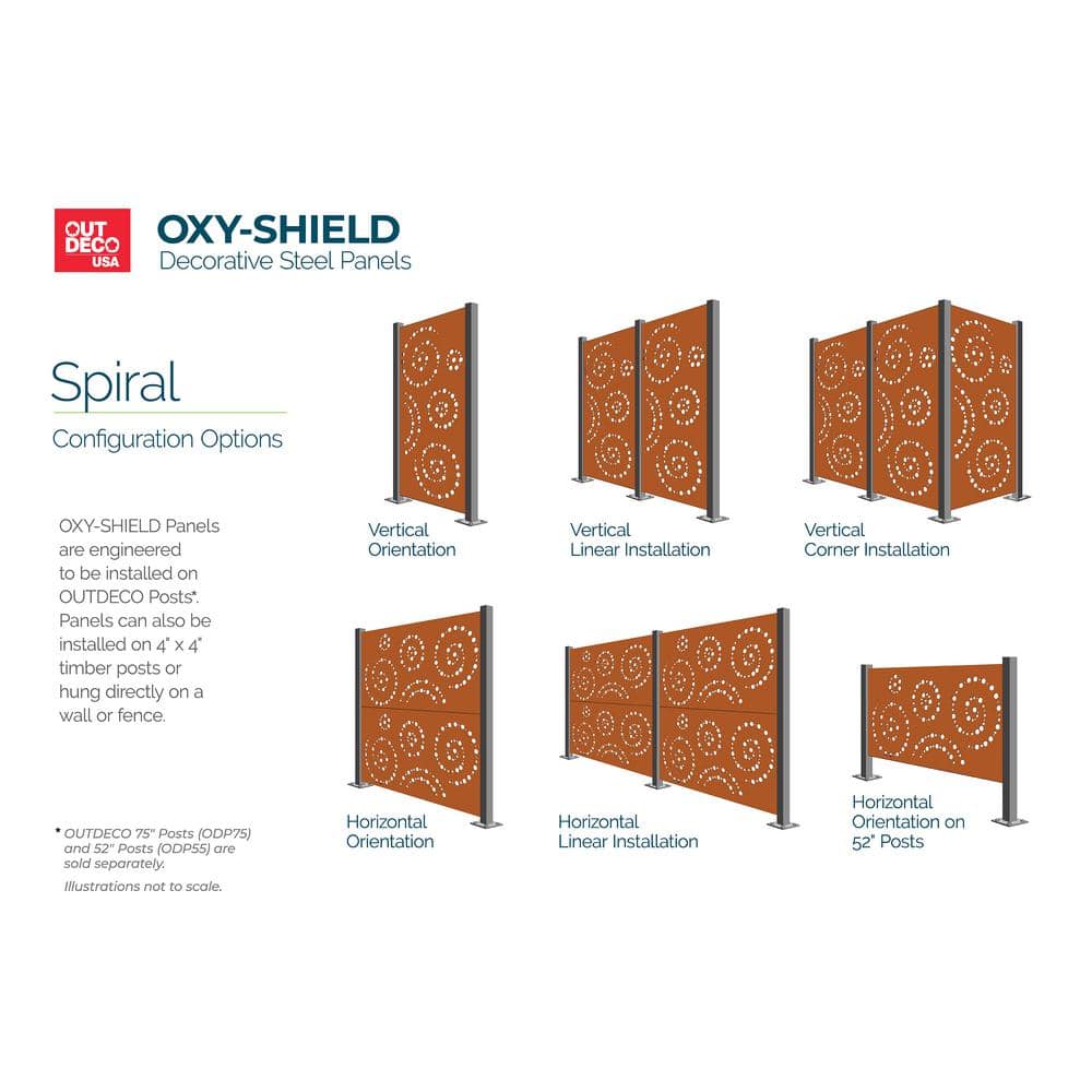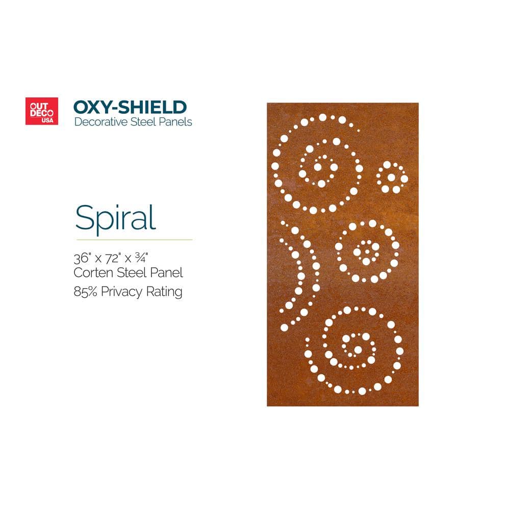 OUTDECO Spiral 3 ft. x 6 ft. Oxy-Shield Corten Steel Decorative Screen Panel in Rust with 6-Screws