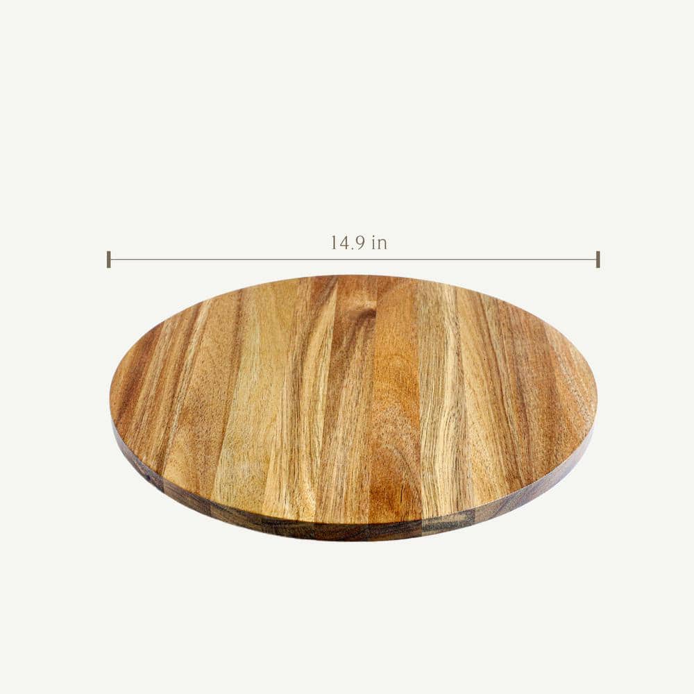 The 15" Acacia Wood Lazy Susan turns your dining table into a focal masterpiece, blending rustic charm with ultimate functionality. Its warm, natural tones and smooth, spacious surface invite family-style dining, making food sharing a seamless joy. Stack artisanal cheeses or elegant condiments upon it, creating a center of attention that is as aesthetically pleasing as it is practical. Integrate this masterpiece into your dining decor for an indispensable touch of luxury and ease.