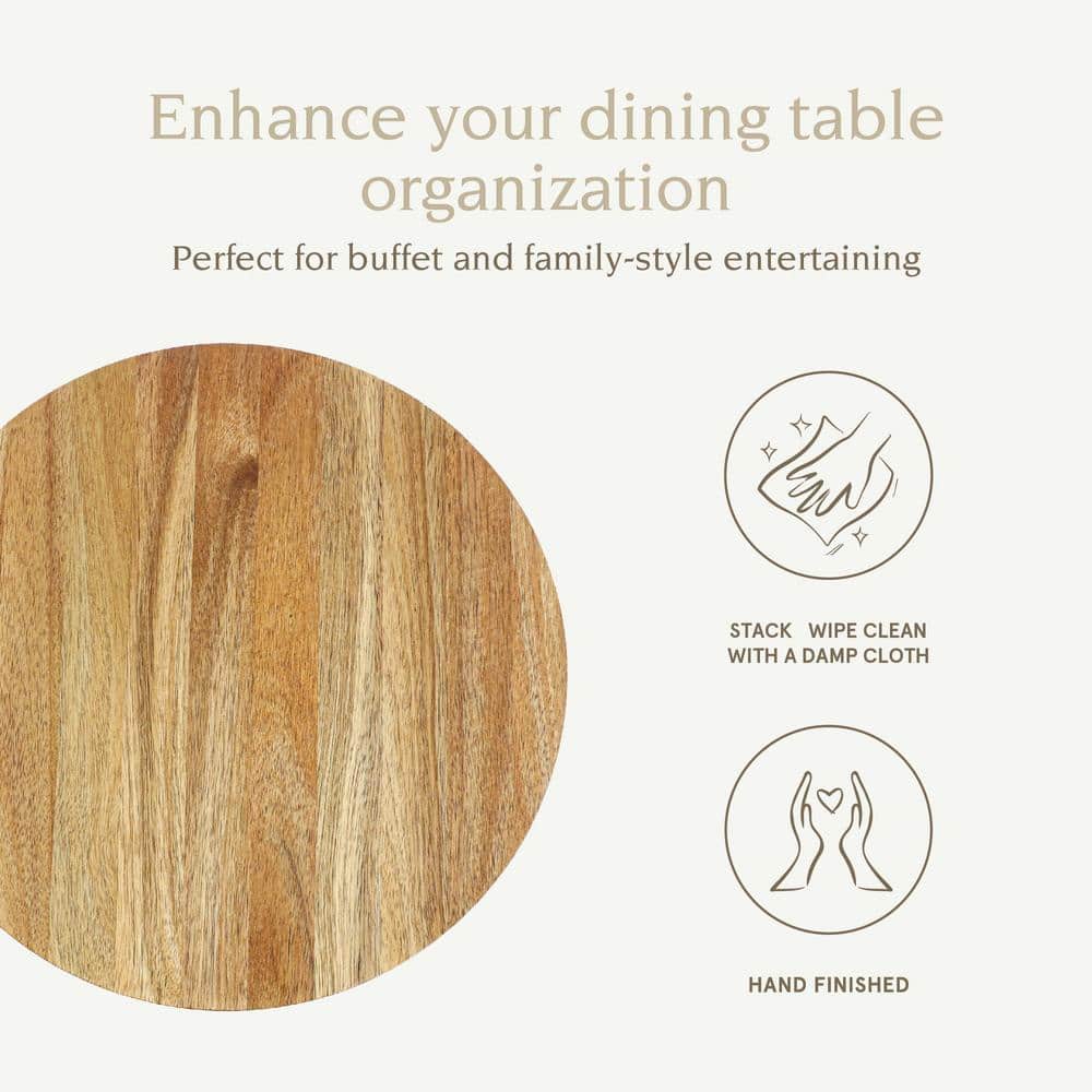 Q: How do I clean the Acacia Wood Lazy Susan? A: The Lazy Susan should be hand washed with mild soap and water. Avoid soaking to maintain the quality of the wood.