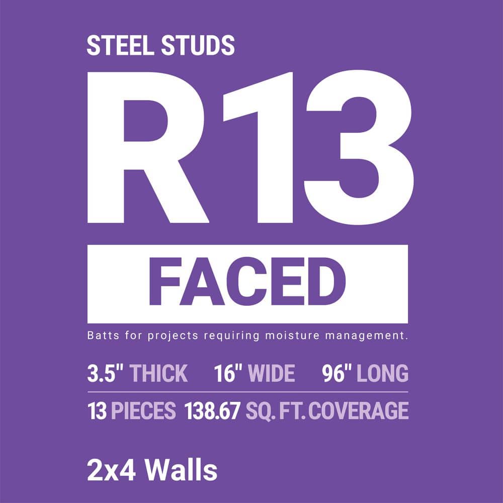 Q: Is the insulation faced or unfaced? A: Faced; it includes a kraft vapor retarder for moisture management.