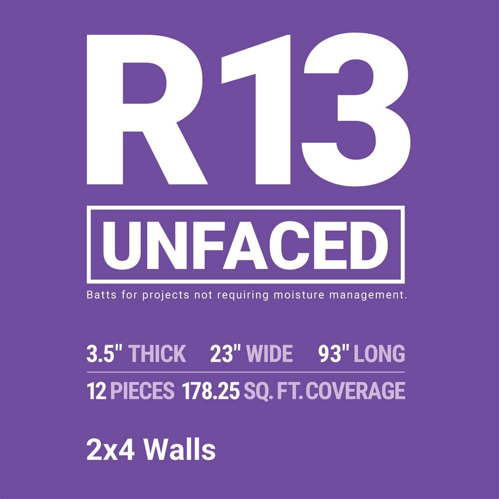 R-13 Unfaced Fiberglass Insulation Batts for 2x4 Walls