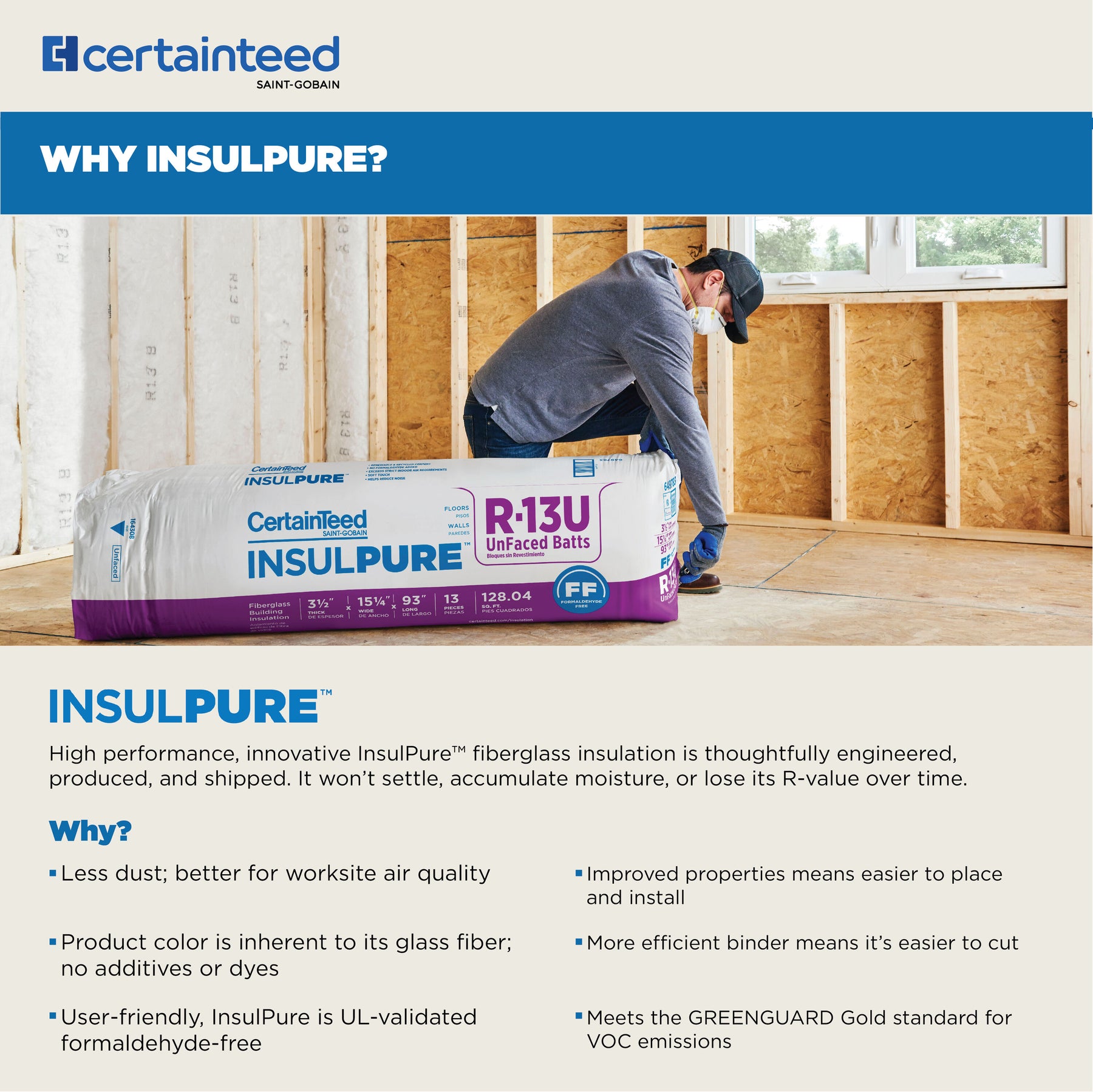 CertainTeed R-30 unfaced fiberglass batt insulation helps improve energy efficiency and comfort in attics, ceilings, and interior walls. The lightweight batts are easy to handle and can be cut to fit, providing both thermal performance and noise reduction.