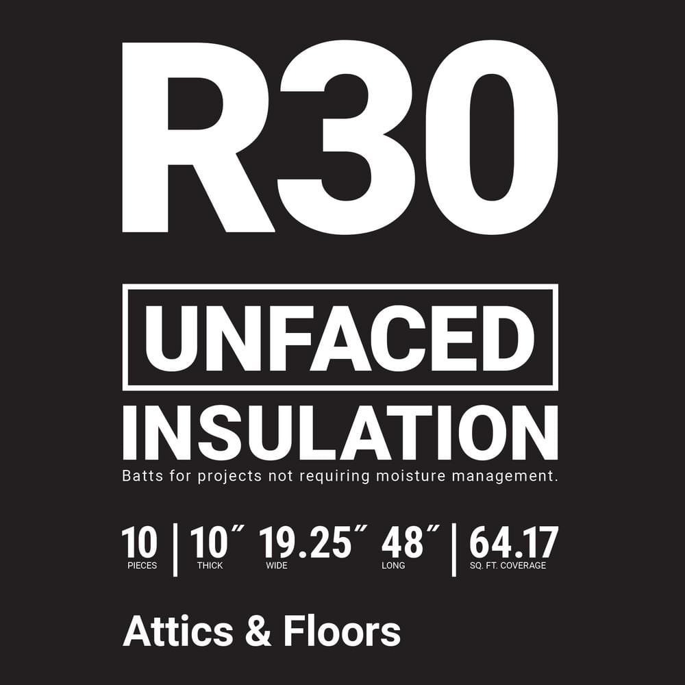 R-30 Unfaced Fiberglass Insulation Batts (19.25 in. x 48 in.)