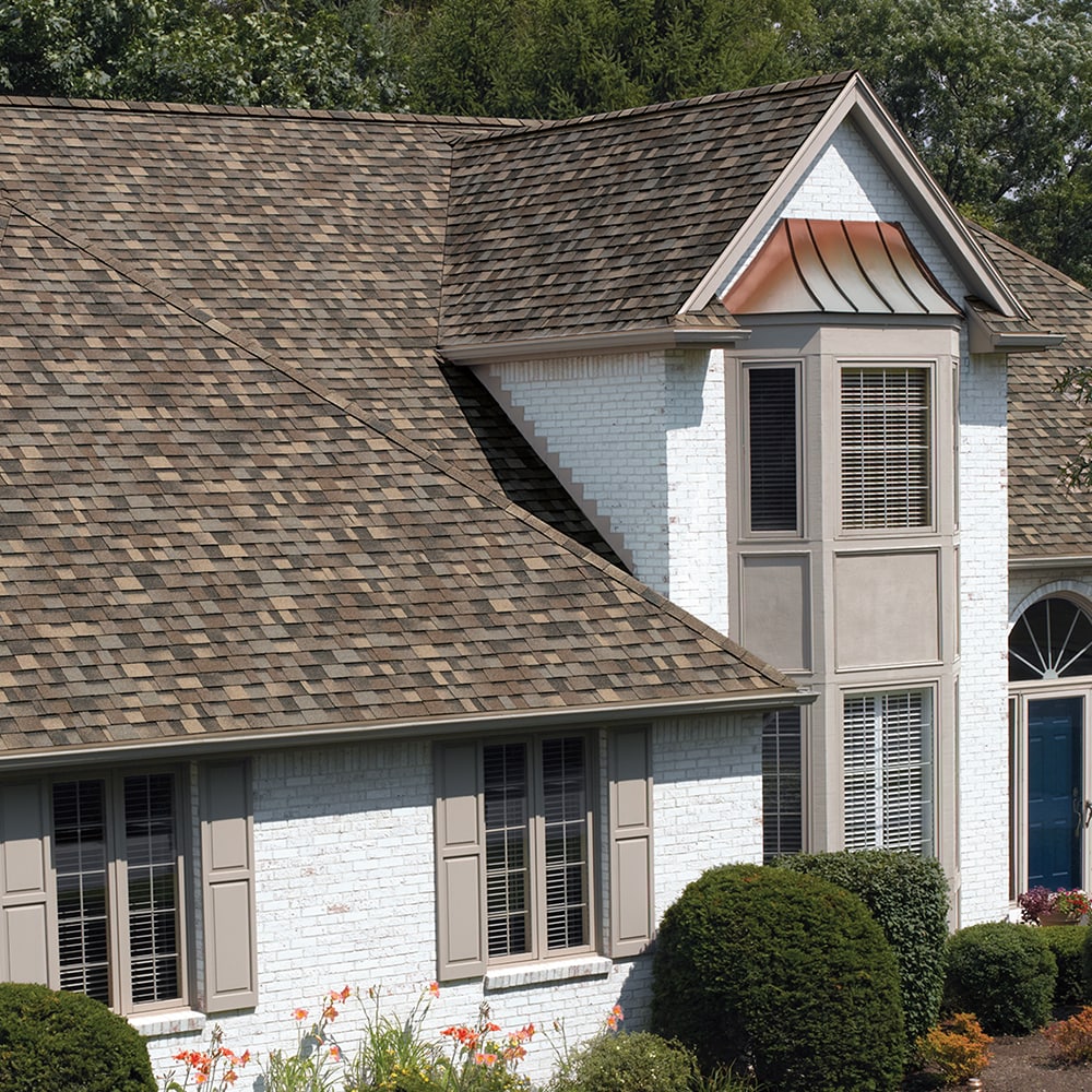 The Sand Dune palette ripples across the roof with nuanced browns and taupes, creating a richly layered canopy that warms the entire façade. I love the dimensional granule blend—its depth and shadowing give even simple rooflines sculptural presence. Pair it with creamy siding and black window trim to let the variegated tones sing. It’s an effortless path to a polished, luxurious exterior.