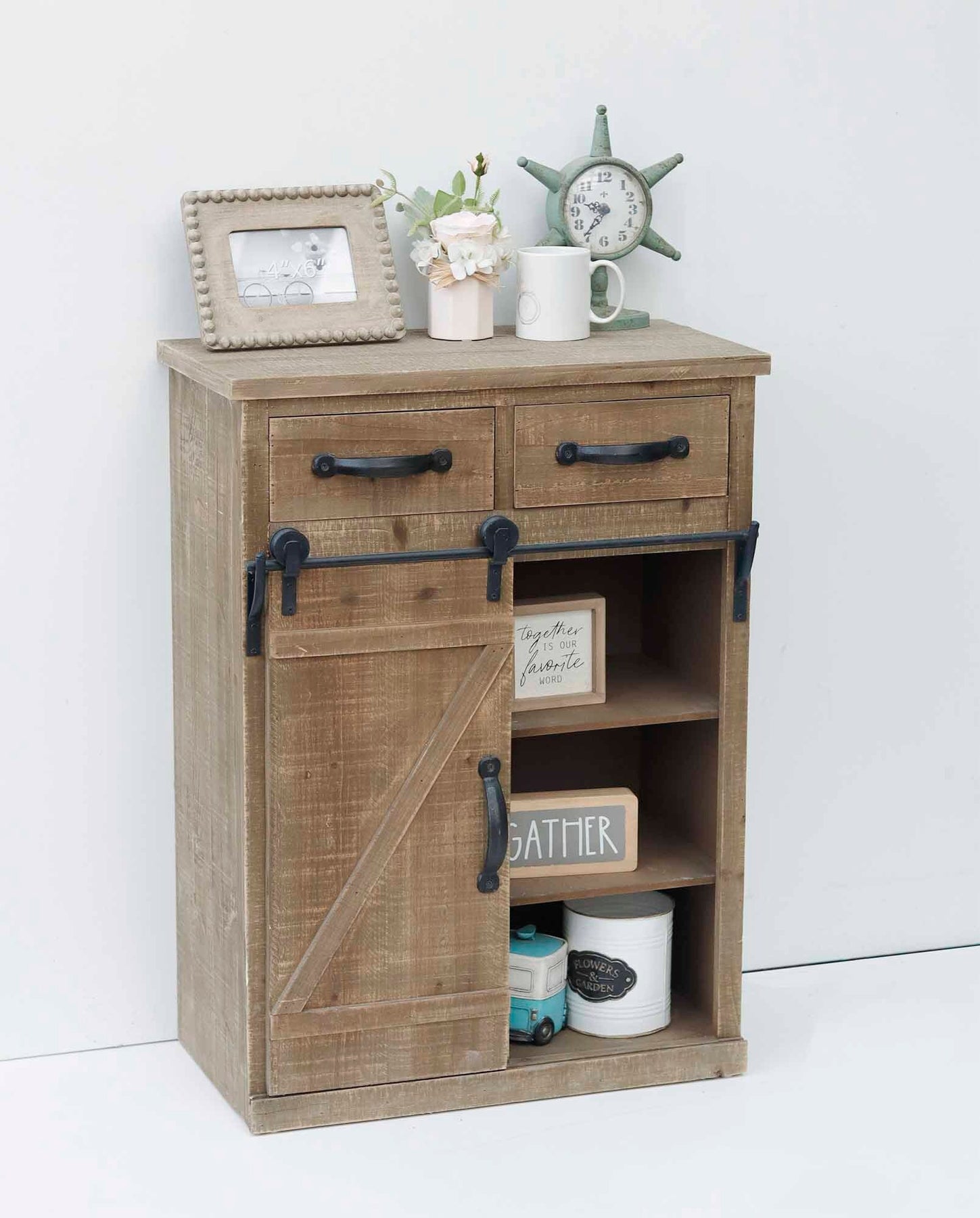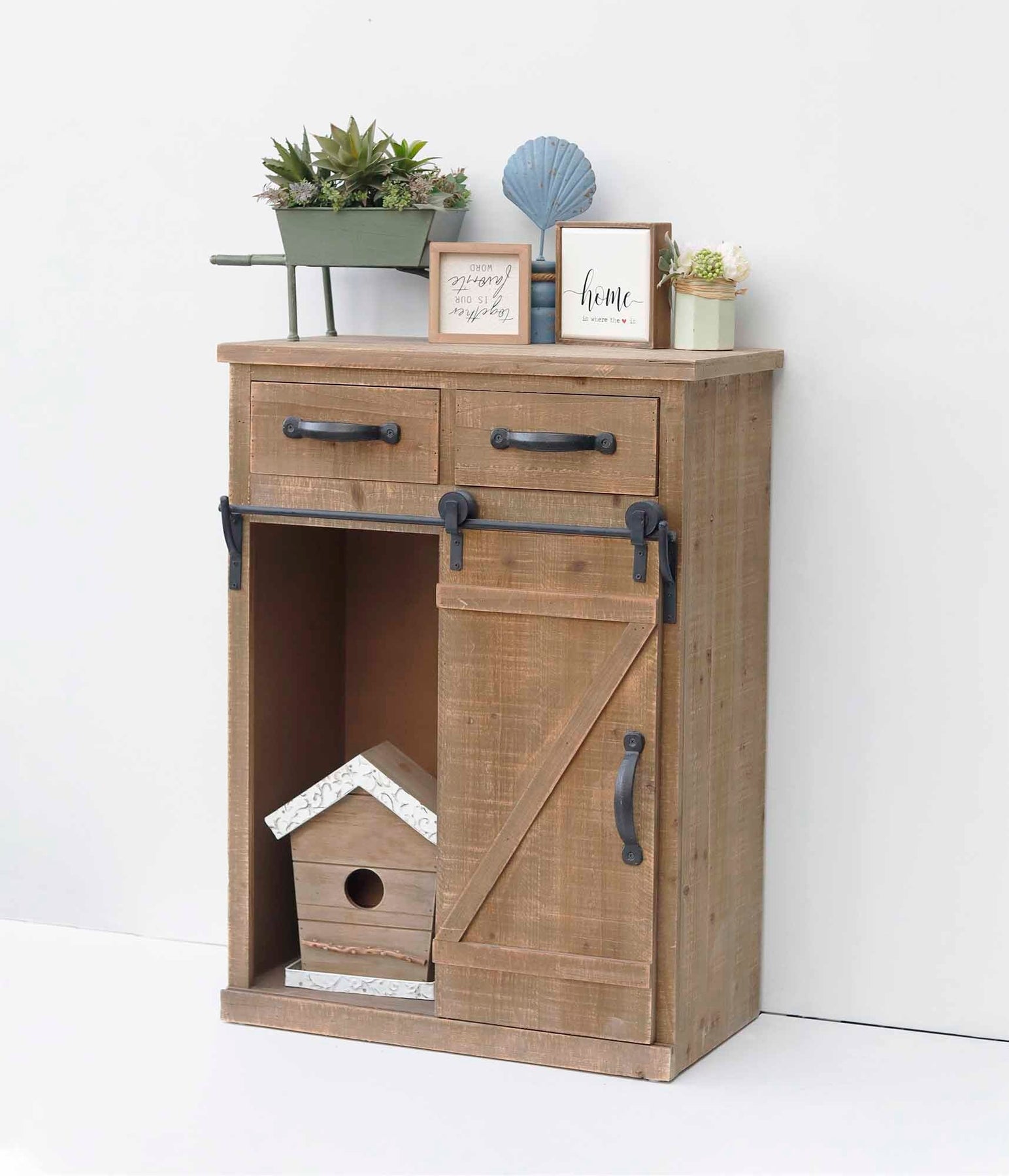 Open Design: Barn door front opens to additional storage space, enhancing utility.