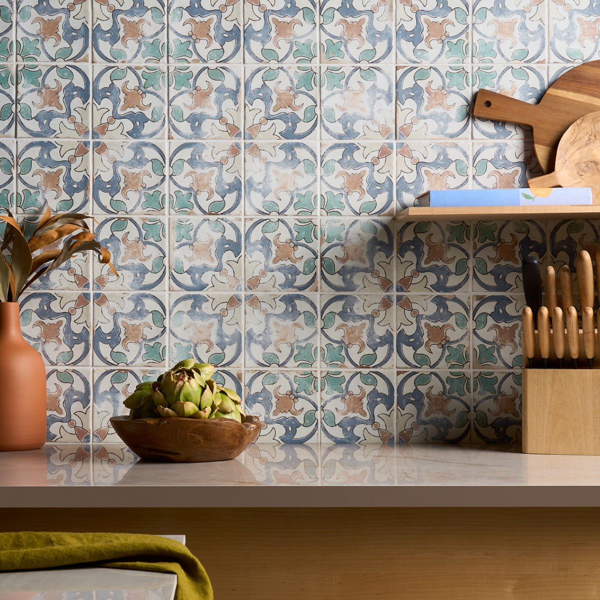 The Talia Fiesta Multicolor Ceramic Tile by Paula Purroy combines old-world charm with modern sophistication. Featuring a vibrant mix of soft hues and a matte finish, this tile is perfect for adding texture and dimension to any space.