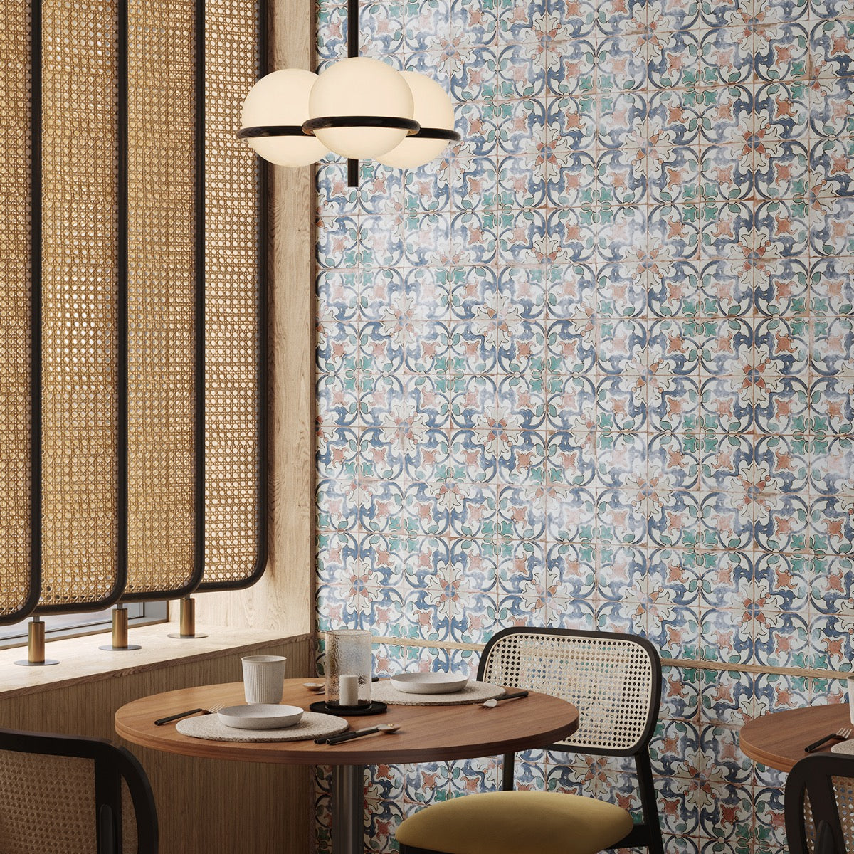 Transform your space with the vibrant and sophisticated Talia Fiesta Ceramic Tile today!