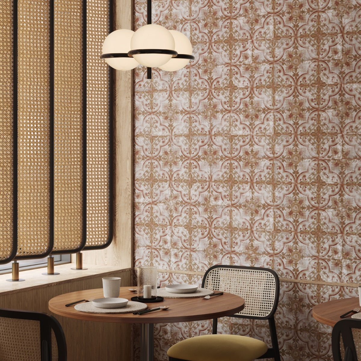 The Talia Vila Terracotta Ceramic Tile is a masterpiece of design, blending intricate motifs with a warm terracotta palette. Its matte finish adds a touch of sophistication, making it perfect for creating a cozy yet elegant ambiance. Use it to transform a kitchen backsplash or a bathroom wall into a work of art. This tile is a testament to luxurious living, embodying both tradition and modernity.