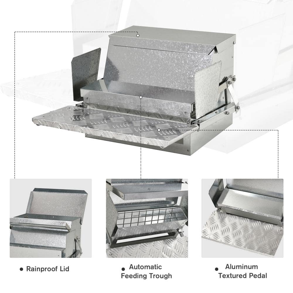 - Anti-Slip Treadle: Prevents chickens from slipping and ensures stable feeding.