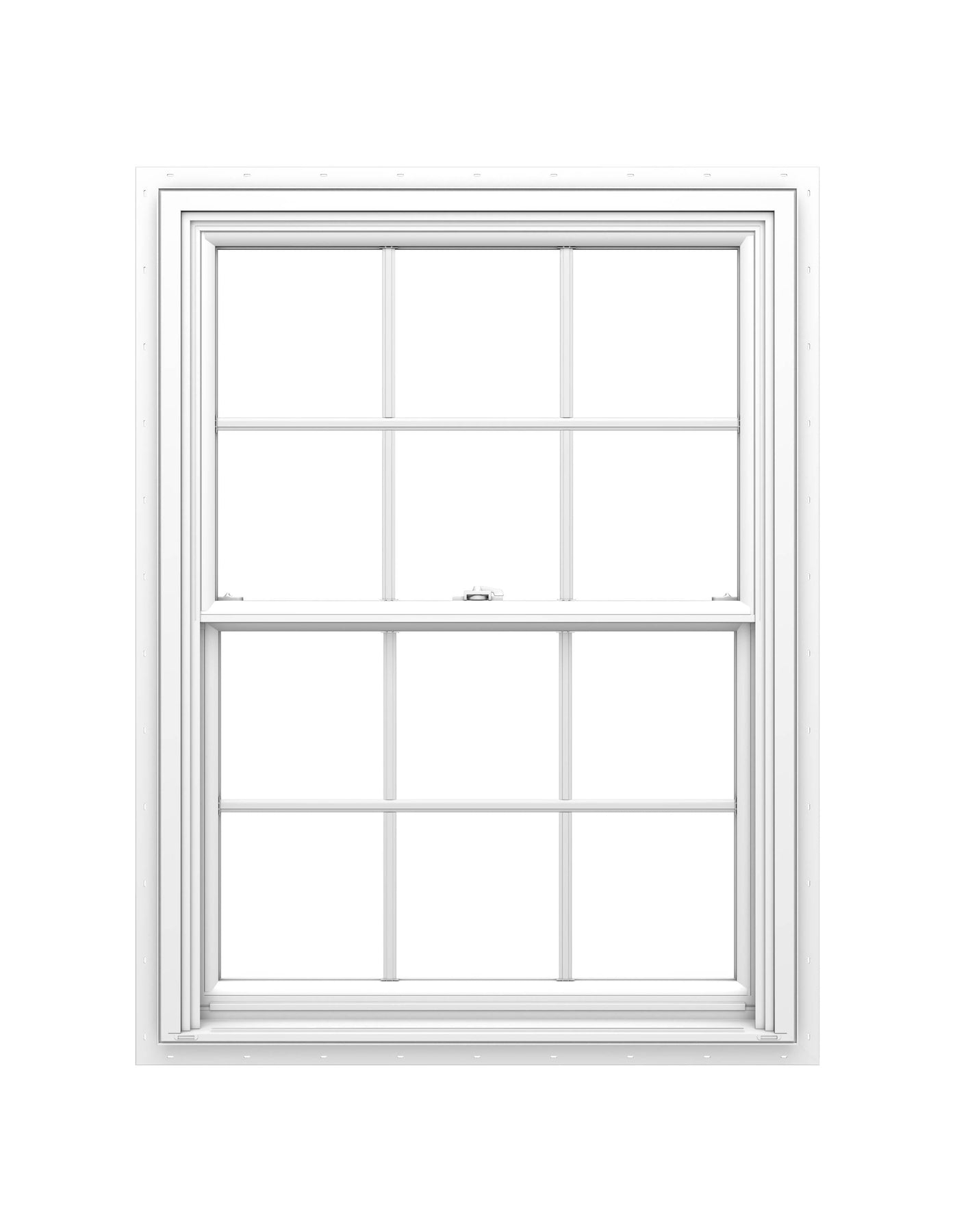 Pella 150 Series New Construction 37-1/2-in x 23-1/2-in White Vinyl Low-E Argon Double-Hung Window with Grids, Full Screen Included