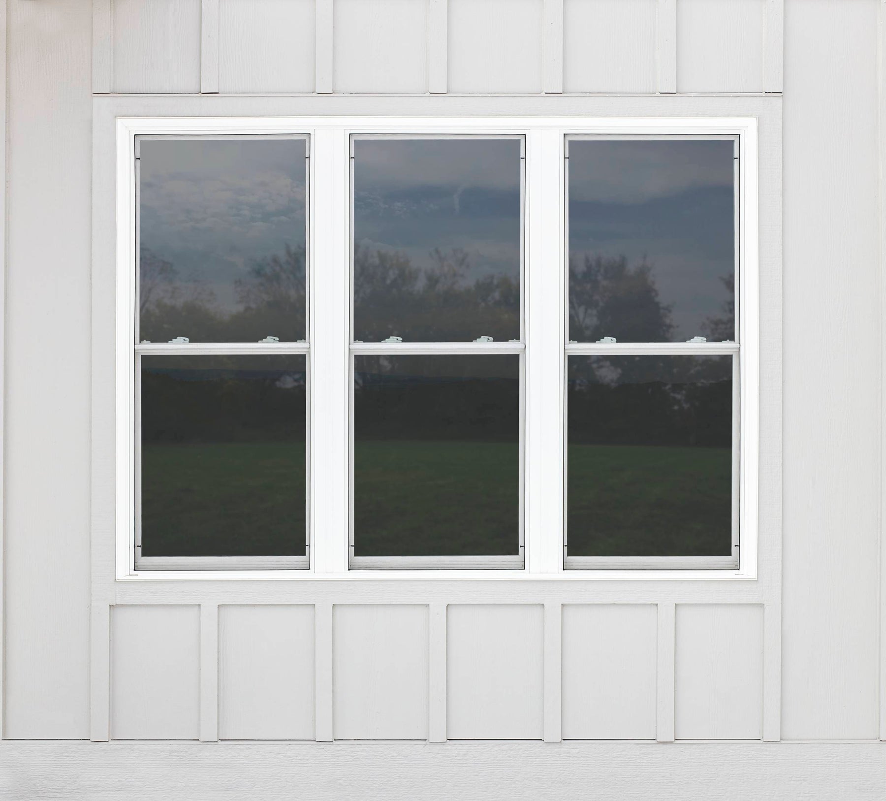 Energy-saving replacement double-hung window crafted from durable white vinyl. Features SunDefense Low-E argon double-pane glass and a high-transparency full screen for year-round comfort and ventilation.