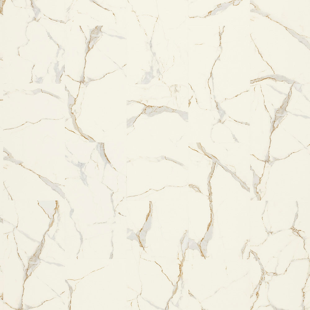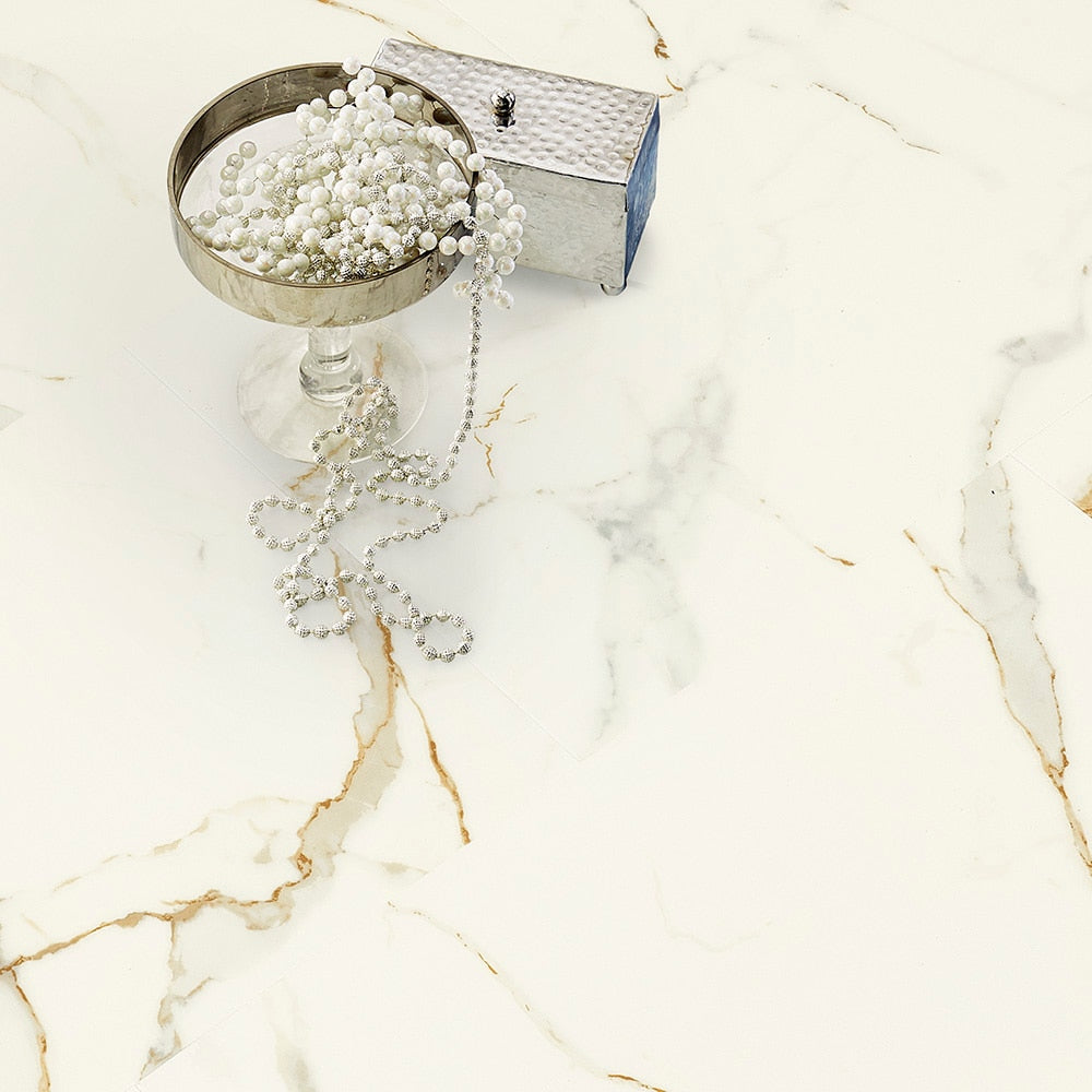 Authentic Stone Design: Subtle blue-gray and gold veining replicates Calacatta marble.