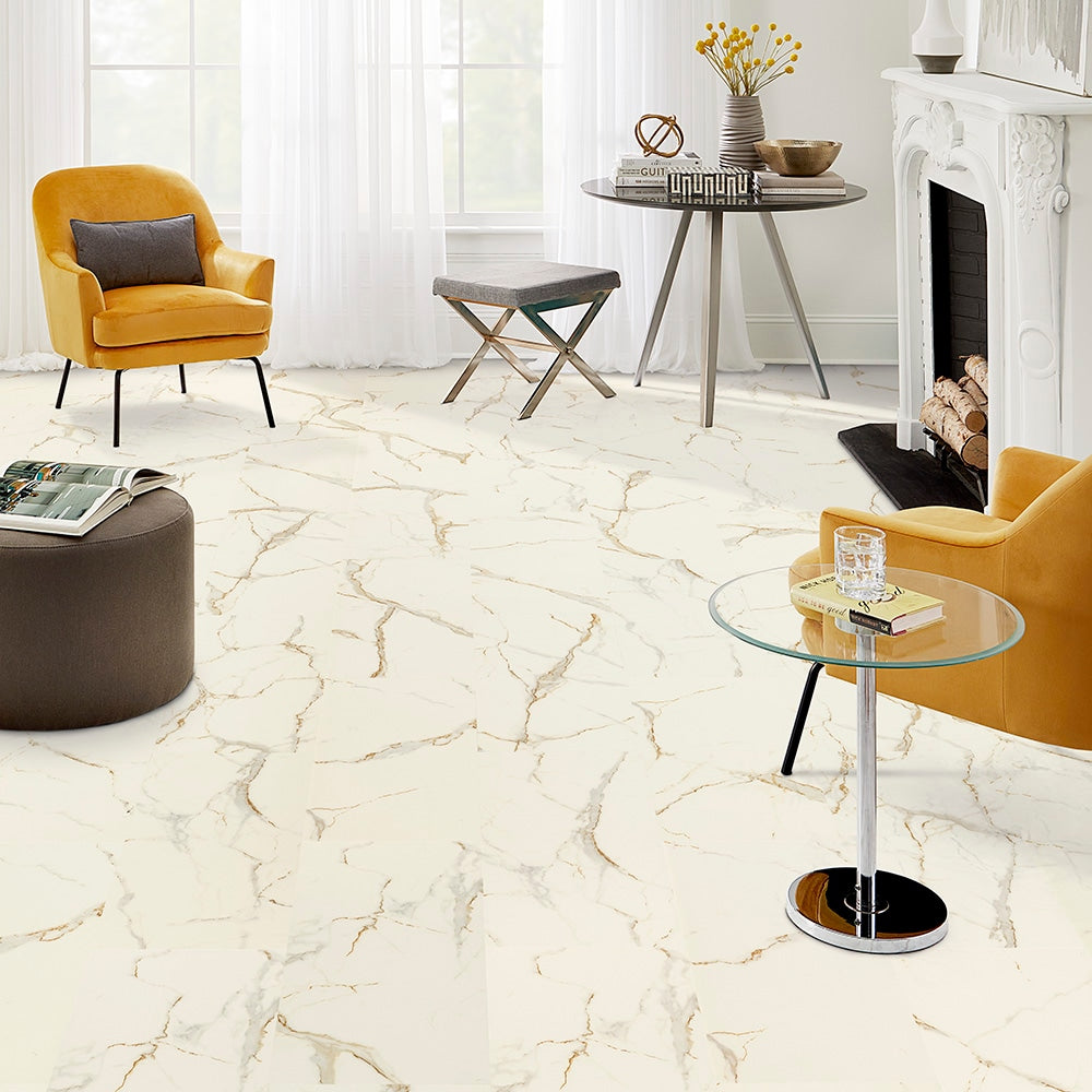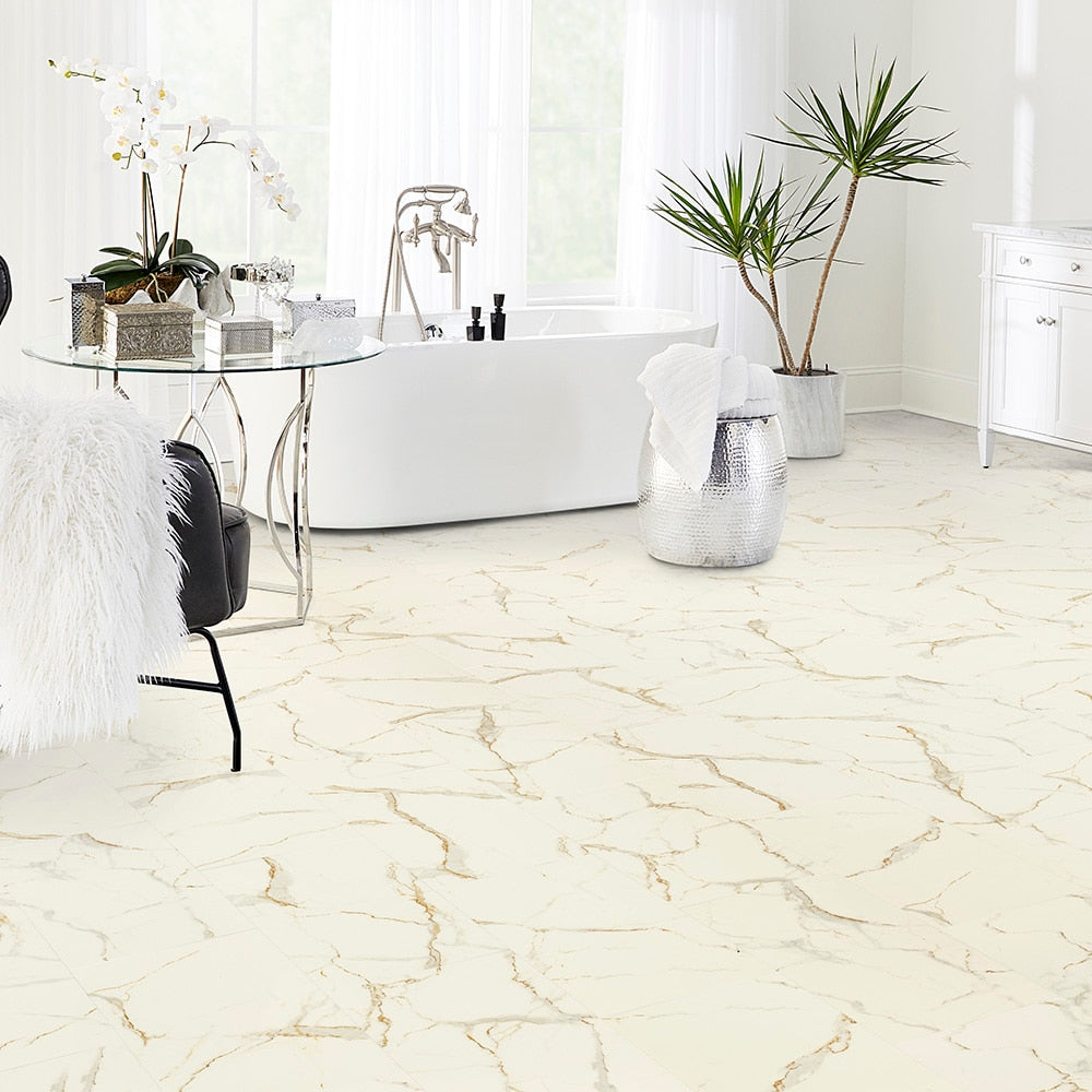 Experience the elegance of Calacatta marble with Pergo DuraCraft Rome Marble Vinyl Tile. This waterproof and durable tile delivers authentic stone texture with a high-performance wear layer that ensures longevity in high-traffic areas. Perfect for spaces prone to moisture, such as kitchens and bathrooms.