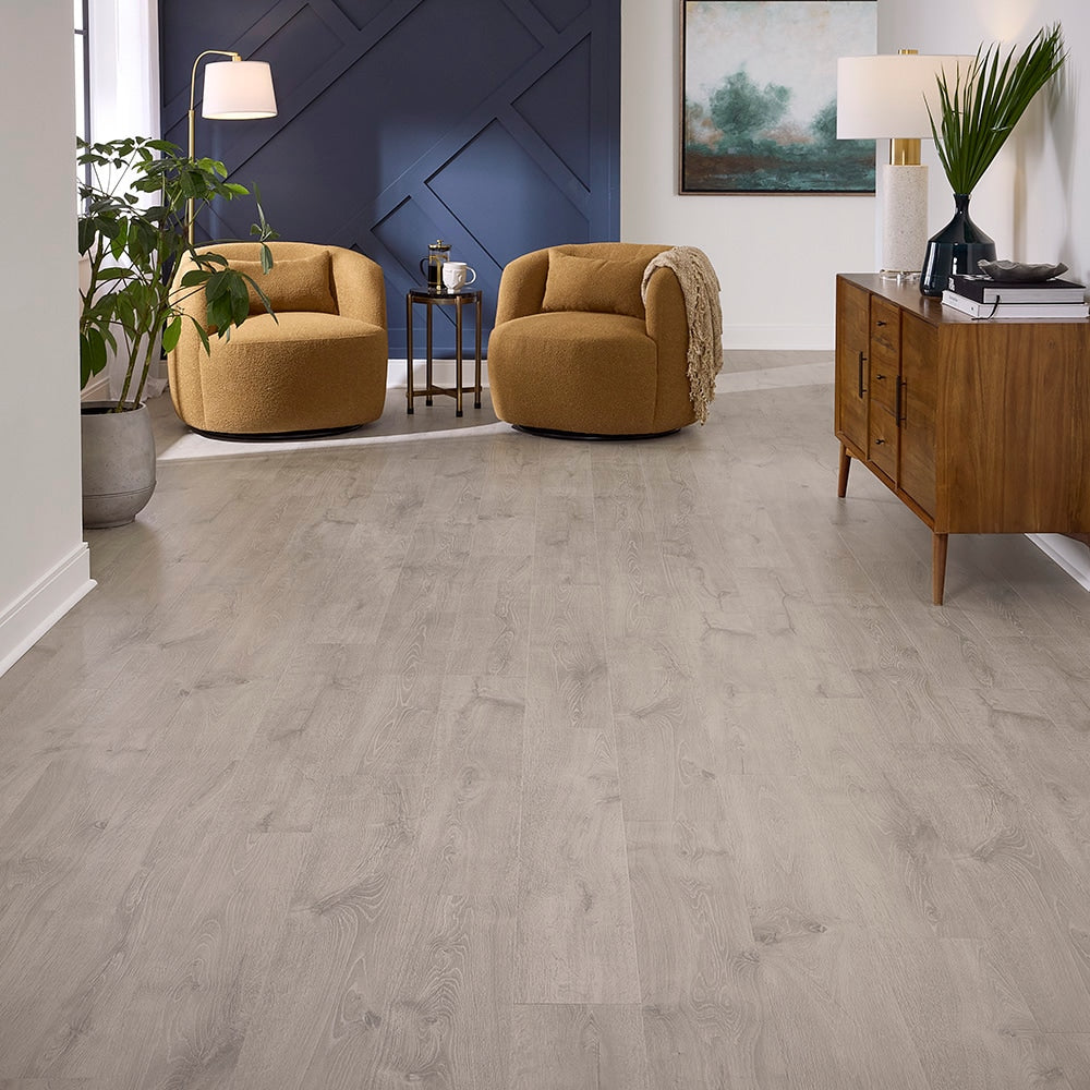 Unveil a space of serene sophistication with Pergo EverCraft Falls Trail Oak Gray Flooring. The exquisite wirebrushed texture, reminiscent of classic craftsmanship, elevates your room with understated elegance. Style it with chic neutrals and plush area rugs to create a haven of comfort and warmth. This flooring is not just a surface; it's an investment in timeless beauty that enhances every step towards luxurious living.