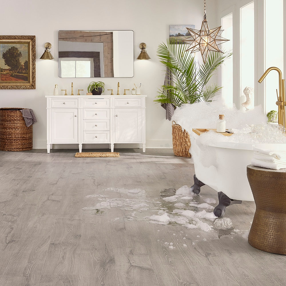 Q: Is this flooring suitable for high-moisture areas? A: Yes, the WetProtect® technology provides a lifetime waterproof surface and subfloor protection, making it ideal for bathrooms, kitchens, and laundry rooms.