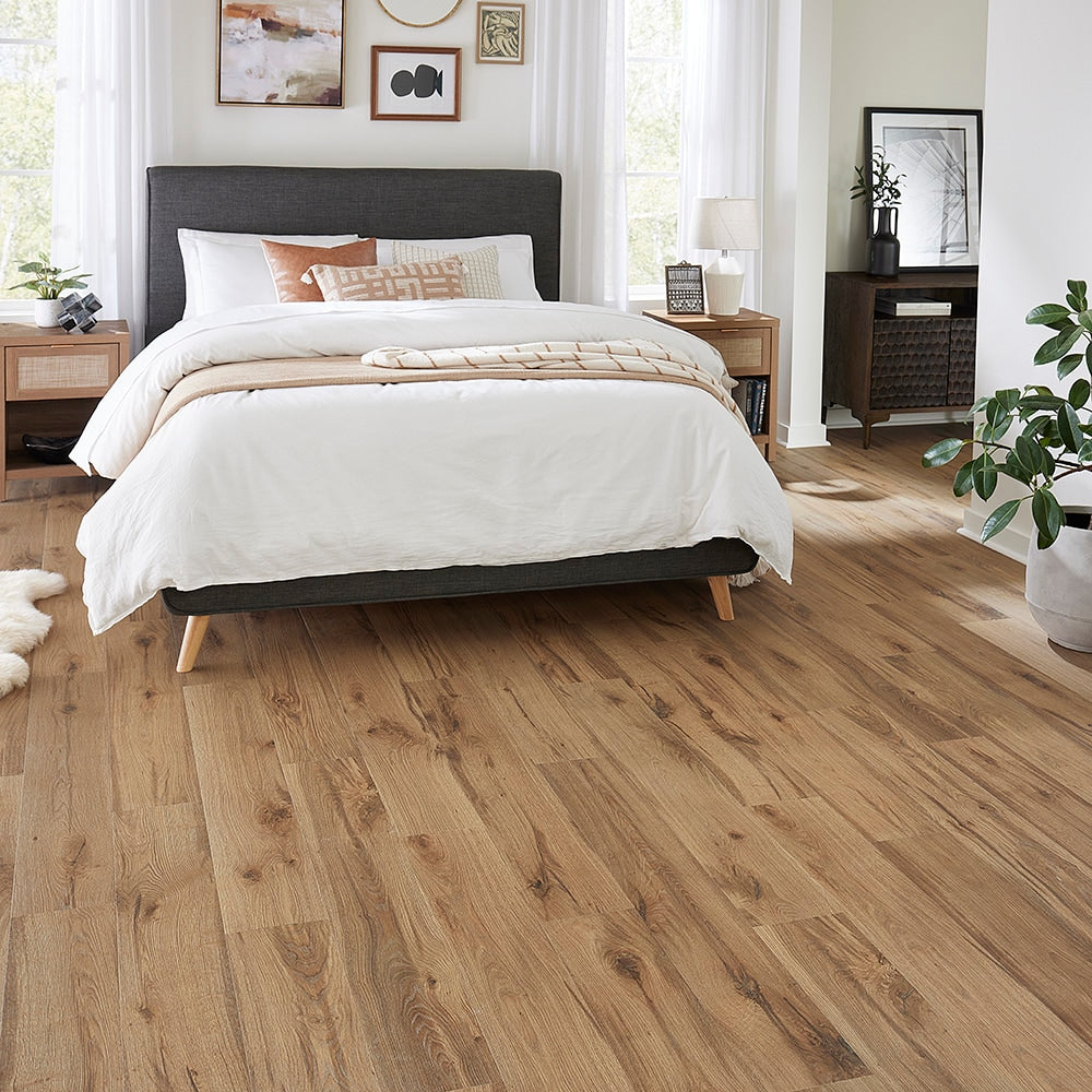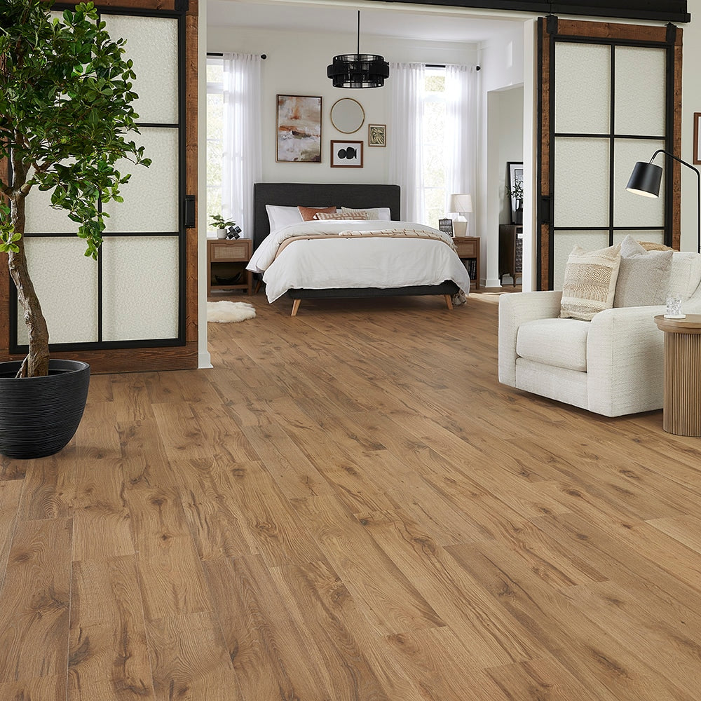 Enhance your space with Pergo EverCraft's Winding Creek Oak waterproof hybrid flooring. Featuring NatureHD™ technology, this flooring showcases authentic hardwood looks while providing unbeatable durability, water protection, and eco-friendly materials. Ideal for high-moisture areas and pet-prone households, it ensures a lasting, beautiful finish in any setting.