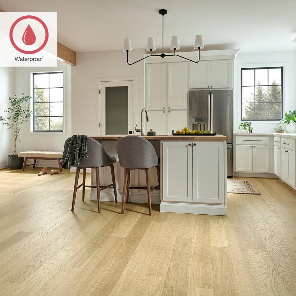 Transform your space with Pergo Outlast+ Frappe Hunt Oak Laminate Flooring, a waterproof and scratch-resistant flooring solution with timeless white oak aesthetics. This easy-to-install product features a matte finish with soft graining that offers a polished yet natural appearance, ideal for any home or light commercial use.