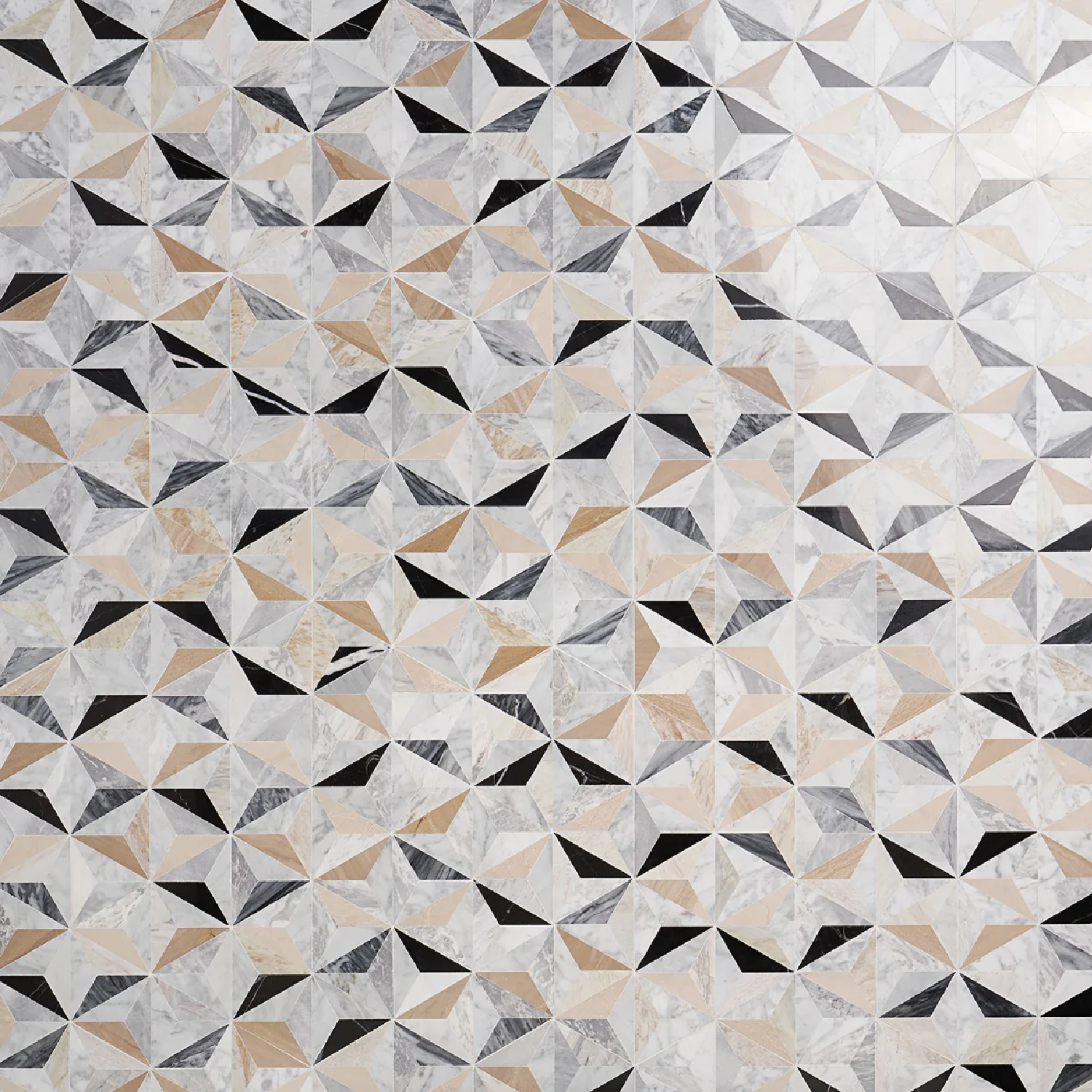 Regular price $56.44Elevate your space with the Phantasm Harvest Cream and Gray Polished Mixed Marble Mosaic Tile. This exquisite mosaic tile features a captivating pattern of triangles forming six-pointed stars, crafted from the finest marbles sourced globally. Perfect for both residential and commercial applications, this tile promises to add a new dimension of visual drama and elegance to any wall or floor.