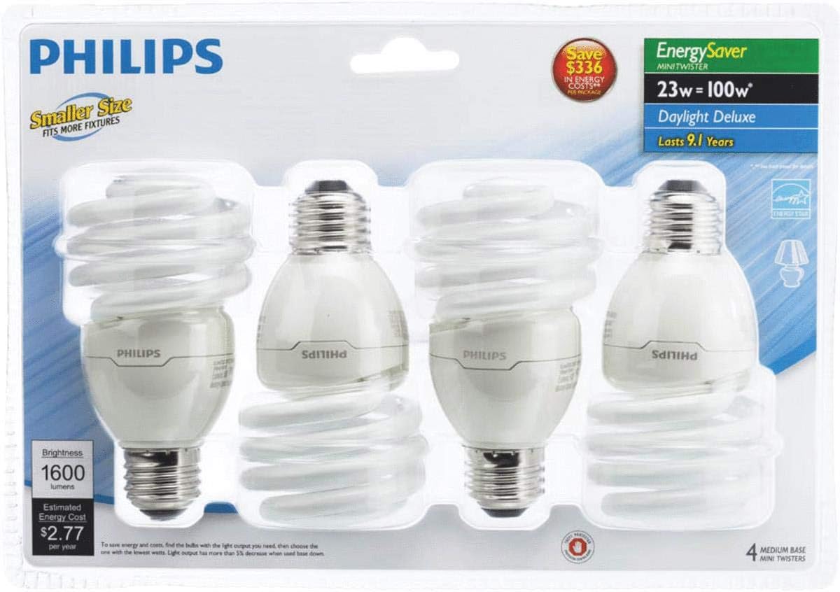 Philips 100-Watt Equivalent T2 Twister CFL Light Bulb, Daylight Deluxe, 23W, E26 Base, 1600 Lumens (4-Pack)