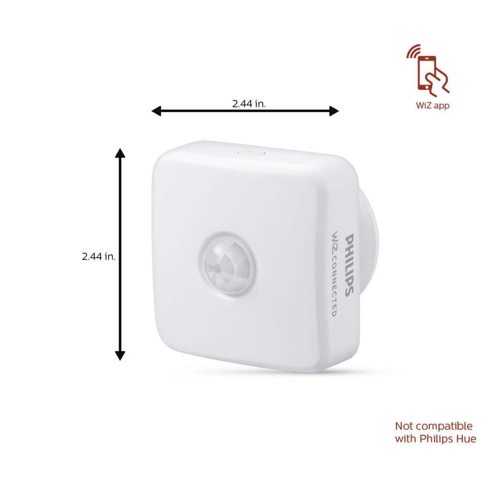 Enhance your smart home with the Philips Smart Wi-Fi Motion Sensor, designed for seamless integration with all Philips Wi-Fi and WiZ connected products. This wireless motion sensor automates lighting control based on occupancy, offering convenience and energy savings. Perfect for spaces like bathrooms, hallways, and staircases, it ensures you have light when and where you need it.