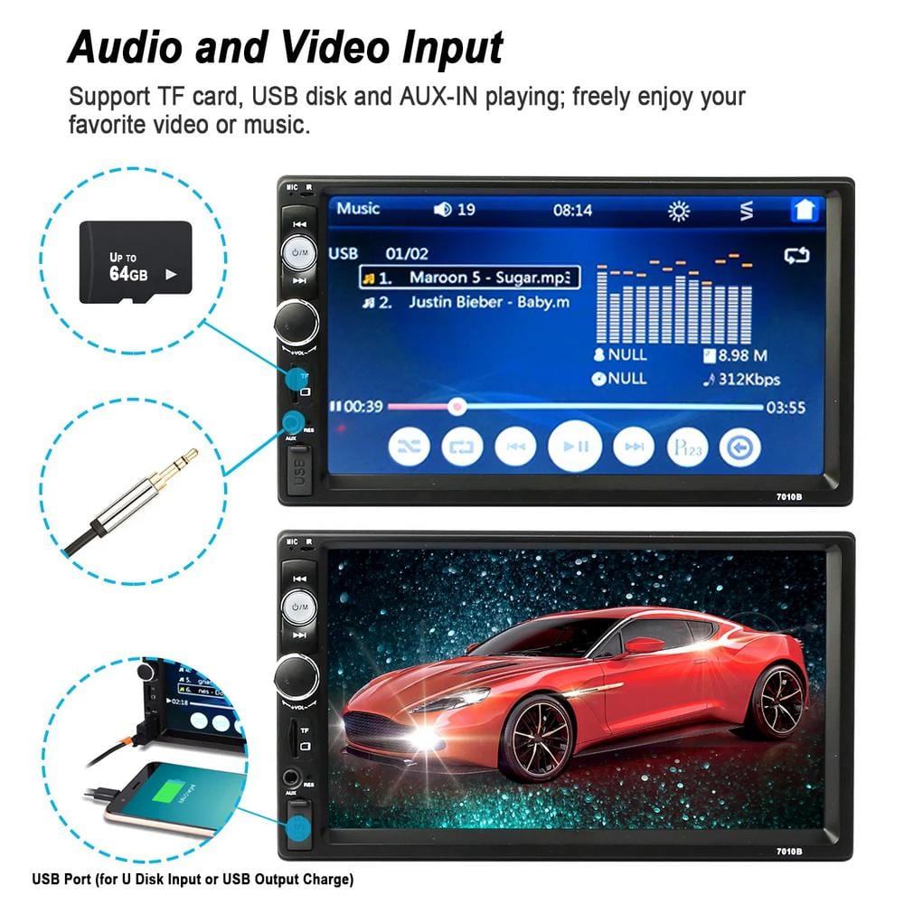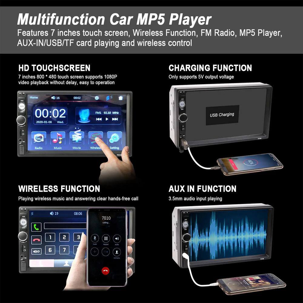 7" Universal Wireless Car MP5 Player with 1080P Video