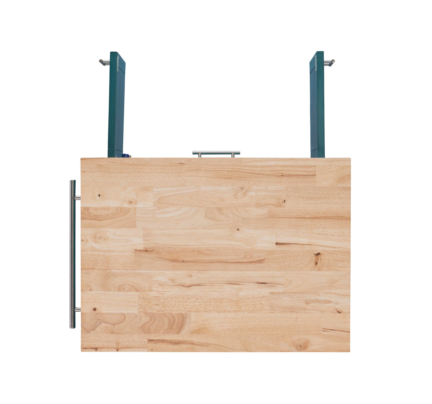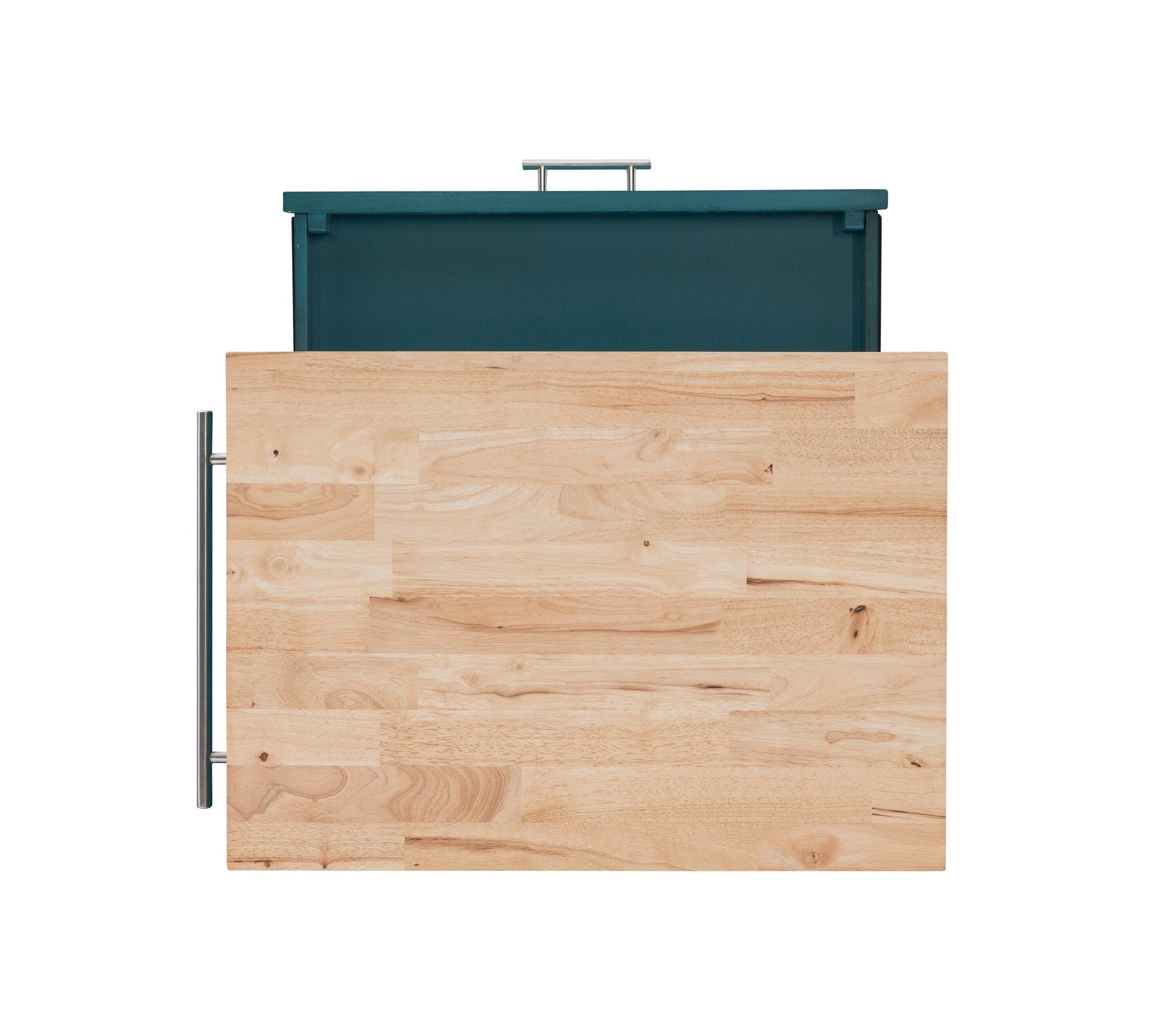 Q: Is the countertop food-safe for cutting and food preparation? A: The butcher block top is designed for durability and is ideal for food preparation. However, using a separate cutting board is recommended to maintain its appearance.
