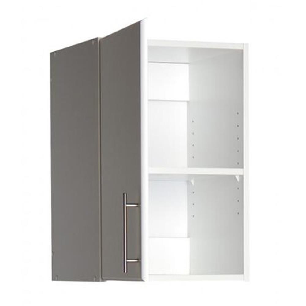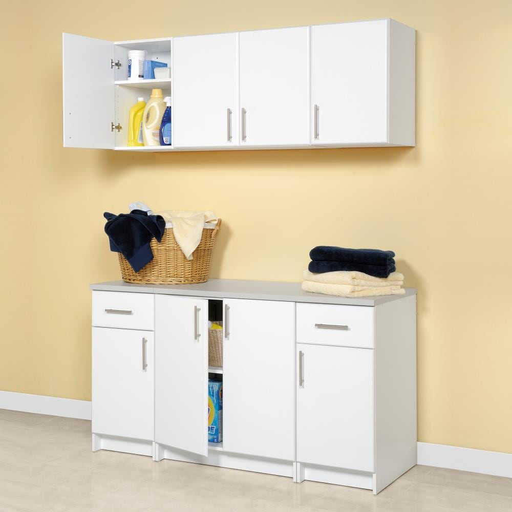 The Prepac Elite 16-in Wall-mount Utility Storage Cabinet offers stylish and functional storage with its extra-deep design, perfect for your workshop, laundry, or garage. Crafted from durable, non-toxic laminated composite woods and finished in pristine white, it seamlessly complements any indoor setting. Easy to assemble and versatile in use, this cabinet maximizes your storage space efficiently.