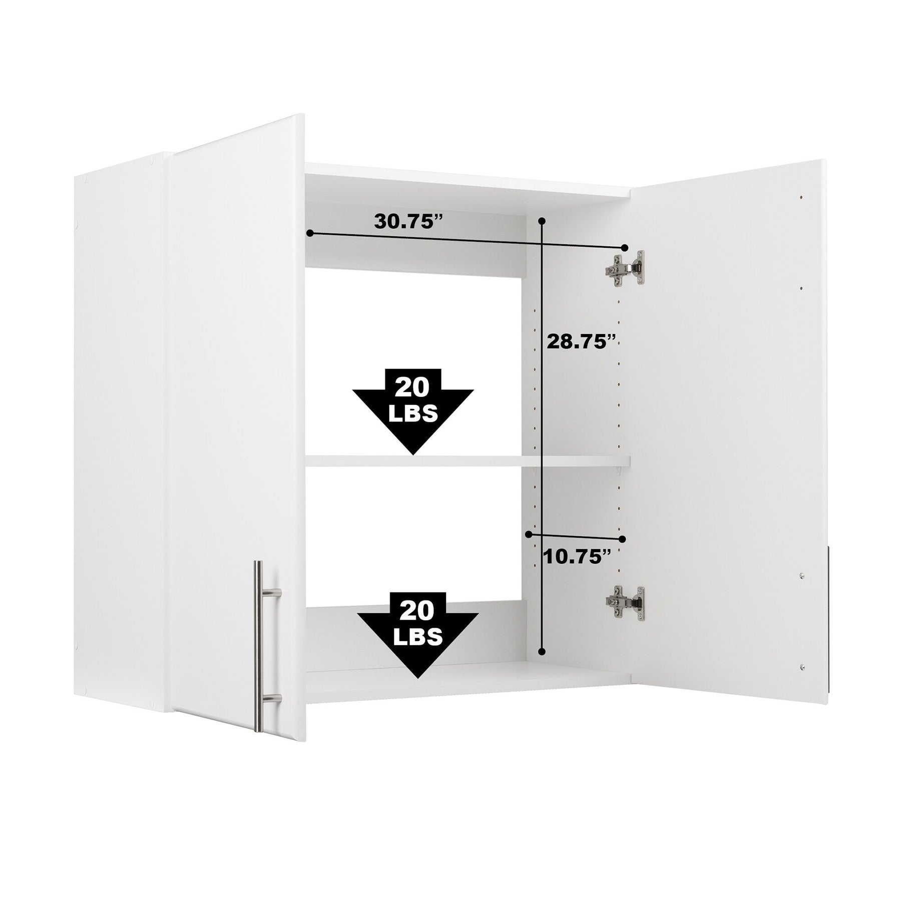 Maximize your storage space with the Prepac Elite 32-in W x 30-in H White Wall-mount Utility Storage Cabinet. Crafted from durable wood composite, this cabinet offers both style and functionality with its sleek design and adjustable shelving. Ideal for various home spaces, it ensures a sophisticated aesthetic while meeting diverse organizational needs.