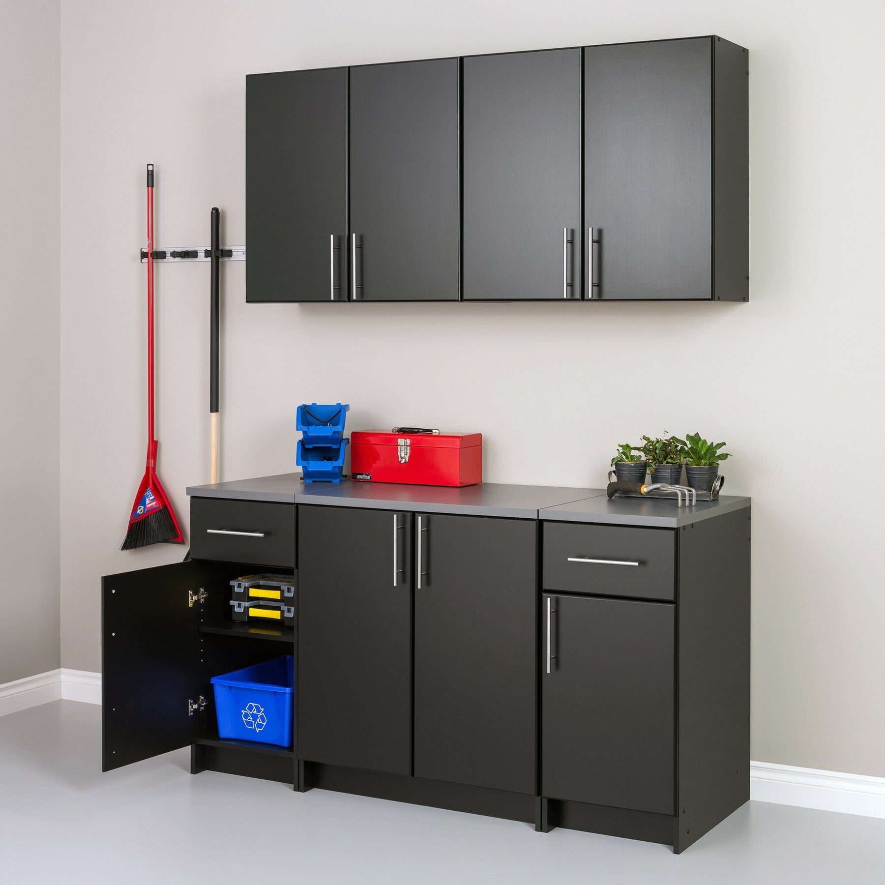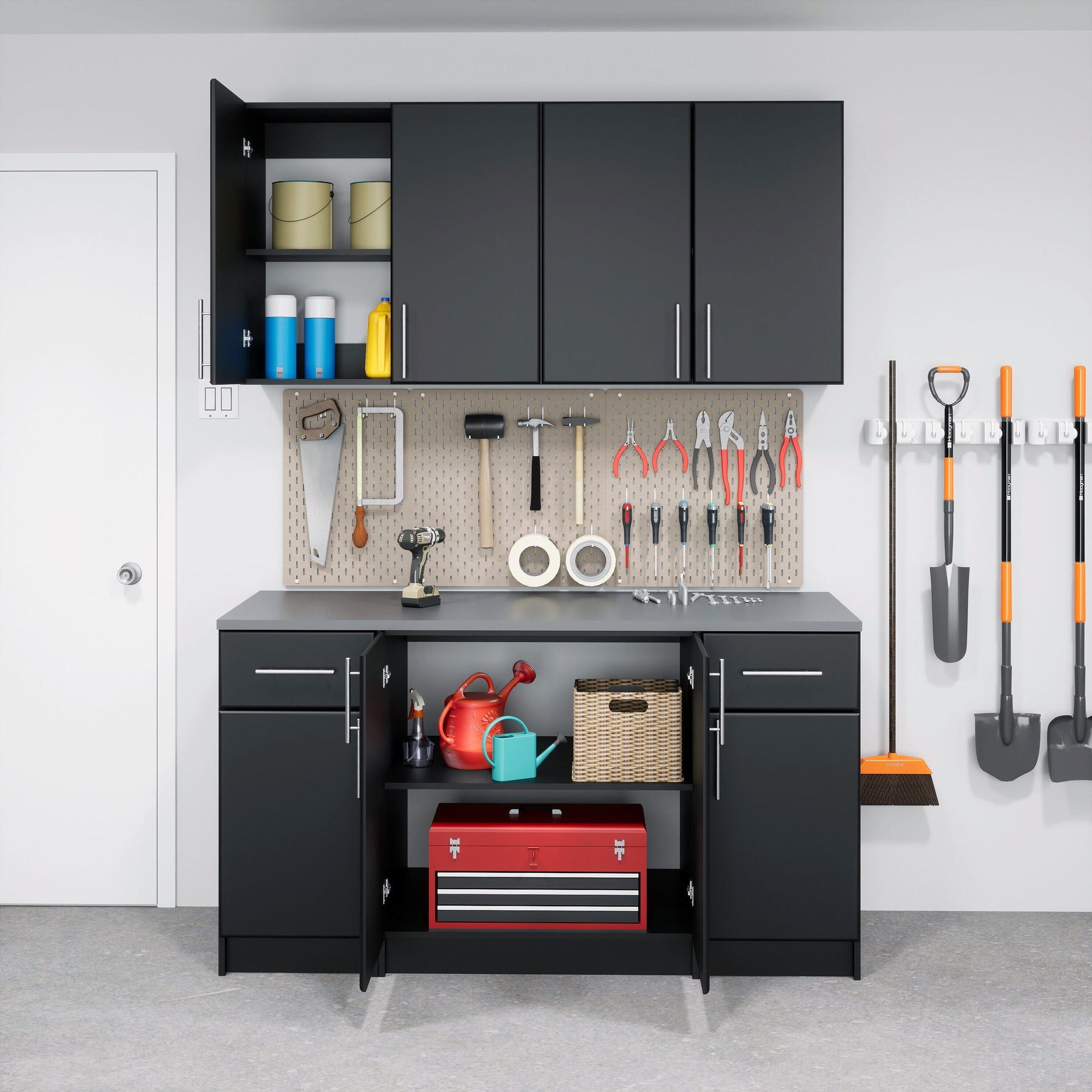 The Prepac Elite Storage Cabinet transforms any room into an organized sanctuary. Its deep black laminate finish pairs effortlessly with both modern and classic interiors, while the brushed metal handles add a touch of sleek refinement. Imagine this cabinet in a chic laundry room or as a centerpiece in a minimalist garage, holding your tools or linens with equal grace. Truly, it is a testament to sophisticated, functional design, making it an essential part of everyday luxury.