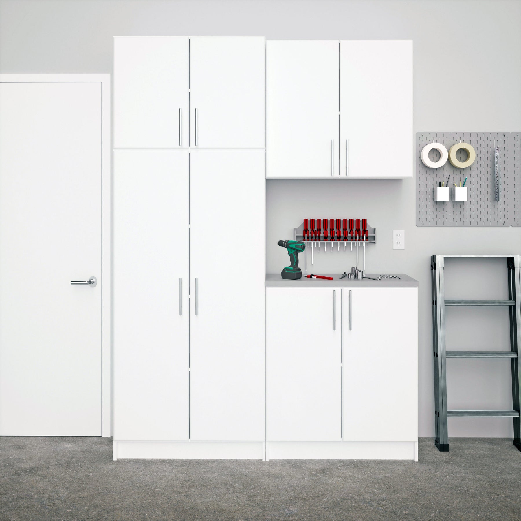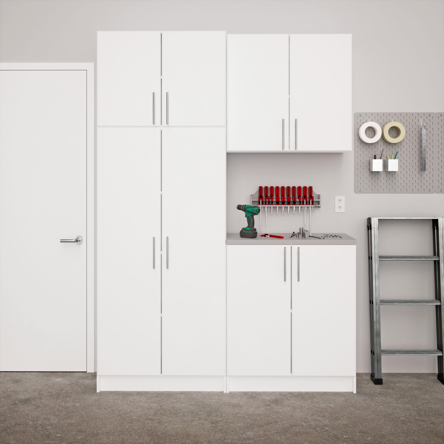 Transform any room with the Prepac Elite Storage Cabinet, a masterpiece that harmonizes design and utility. Its pristine white finish and sophisticated brushed metal handles catch the eye, while practical features like adjustable shelves cater to both aesthetics and function. Imagine it as the definitive piece to refine your workspace or as an elegant storage solution in a chic laundry area. This cabinet isn't just about storage—it's an affirmation of style in organized living.
