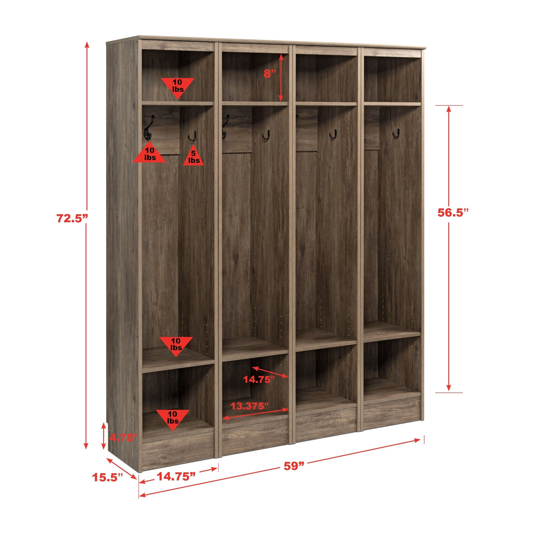 Ample Capacity: Supports up to 50 lbs total, providing sturdy storage for coats, bags, and more.