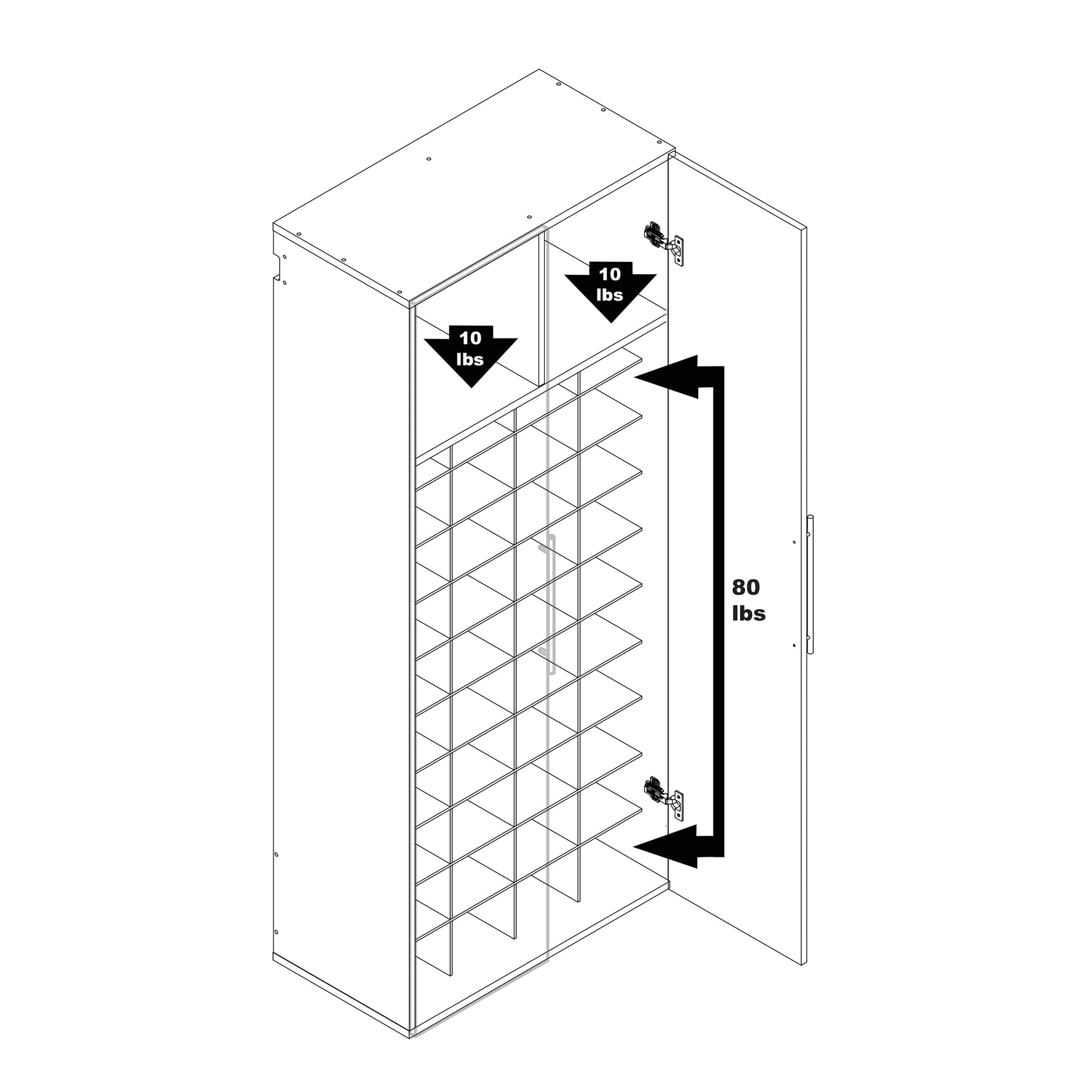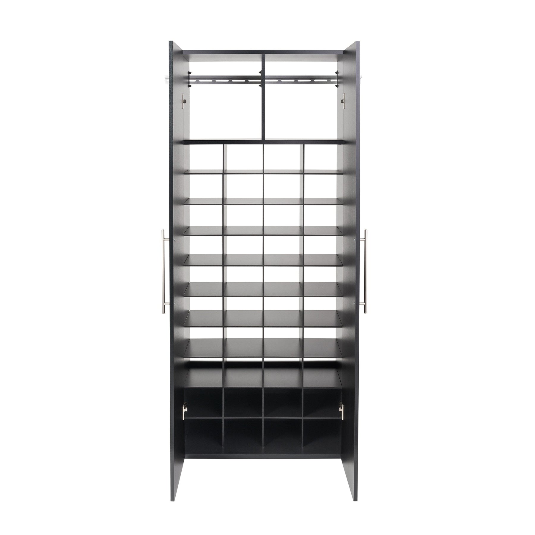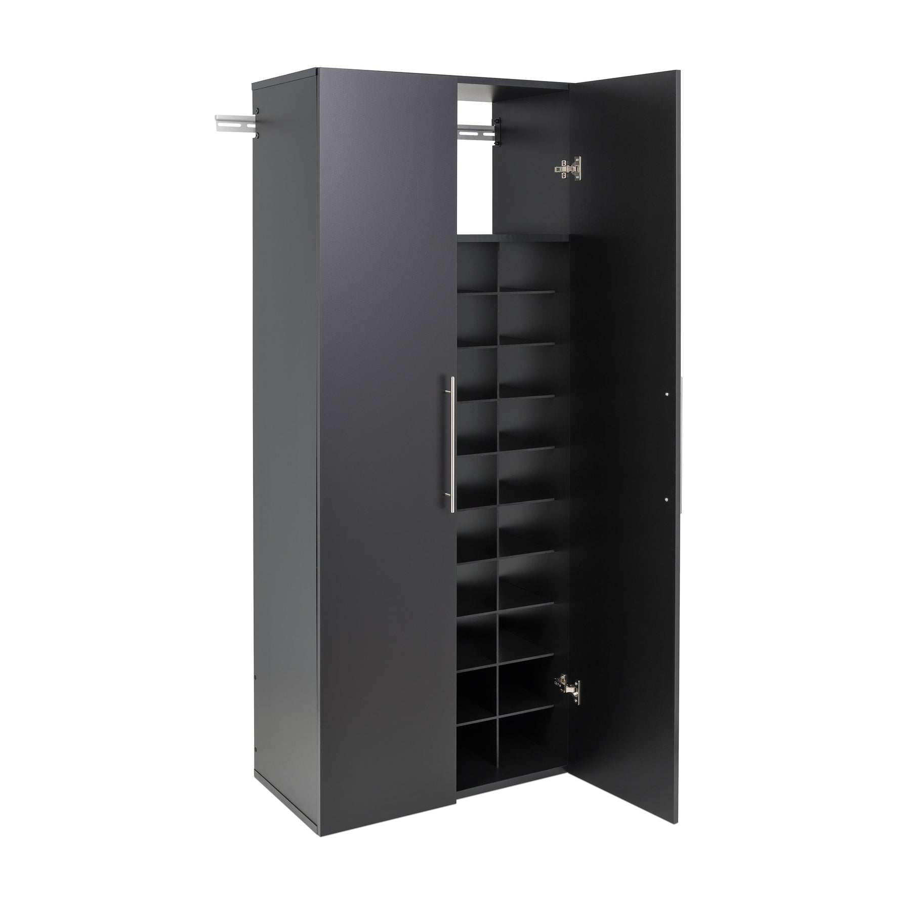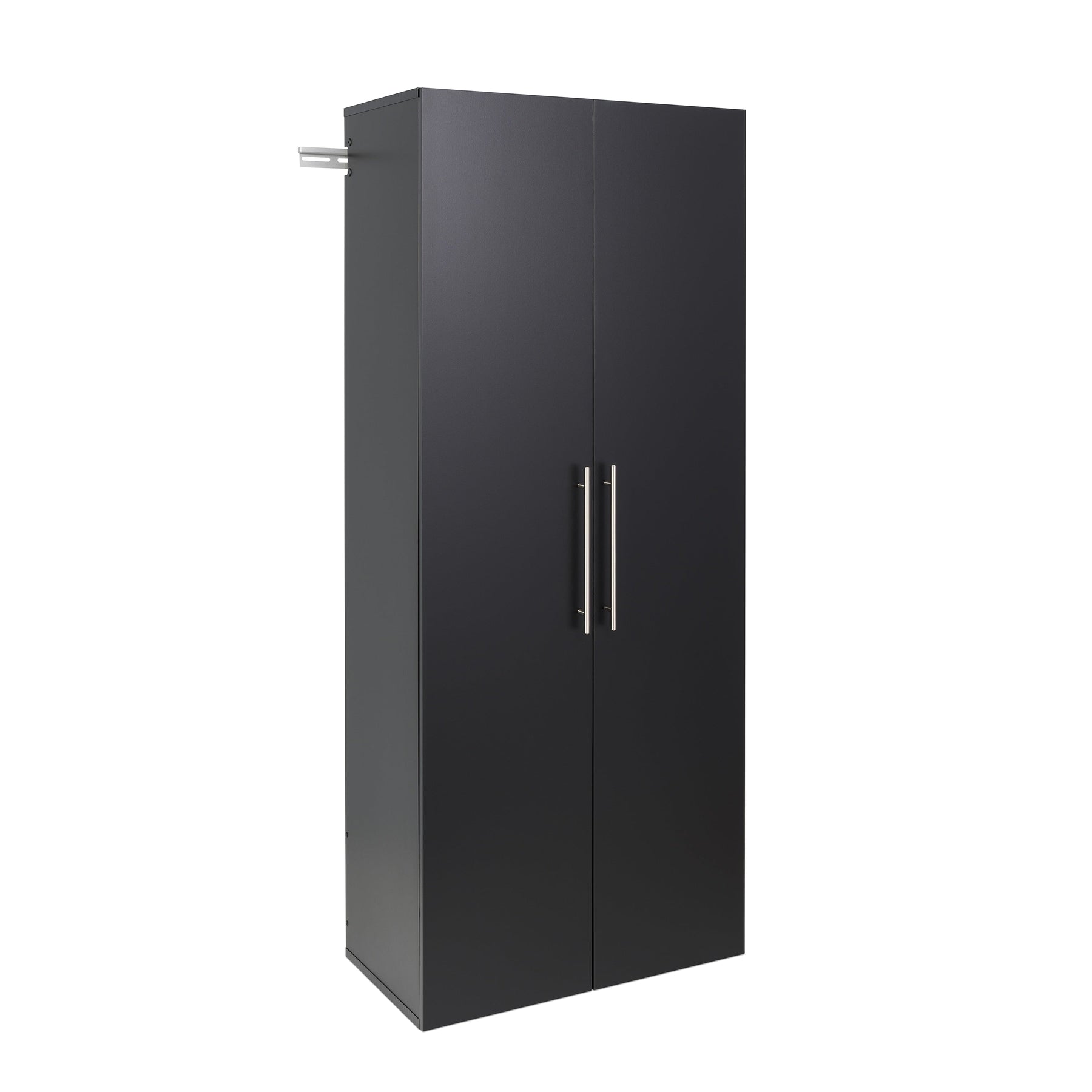 The Prepac HangUps Wall-mount Utility Storage Cabinet offers 30 individual shoe cubes and versatile storage for your garage, laundry room, or office. Constructed from durable wood composite, this stylish black cabinet helps maintain a tidy space with easy assembly and robust materials. Elevate your storage with this expertly designed wall-mount system.